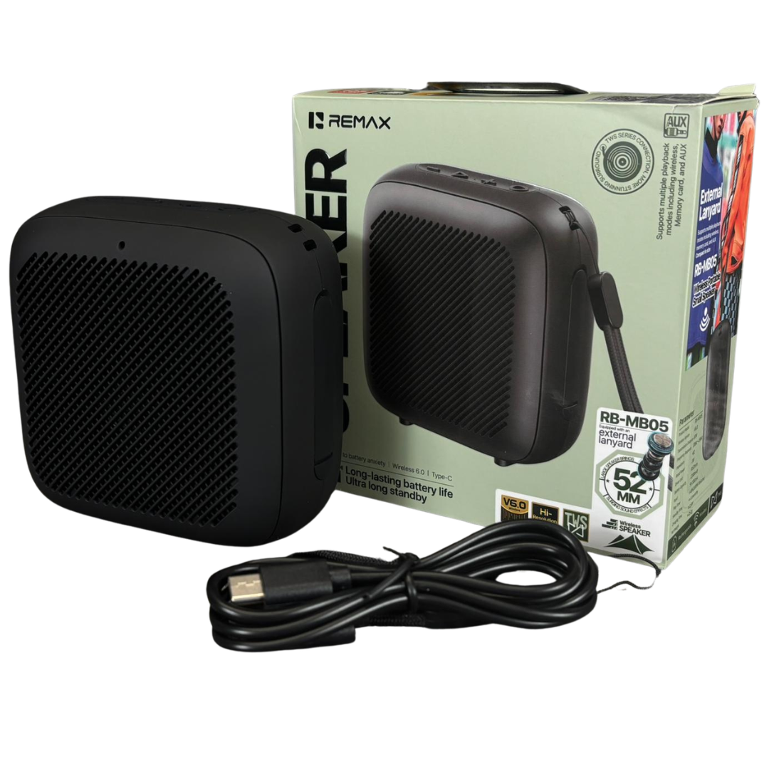 A brand new Black Portable Wireless Bluetooth Speaker designed to deliver powerful sound in a compact, travel-friendly form. Finished in a sleek, modern casing, this speaker combines durability with style, making it ideal for everyday use, outdoor activities, or on-the-go listening. Its lightweight build and integrated lanyard allow for easy carrying, ensuring your music is always within reach.