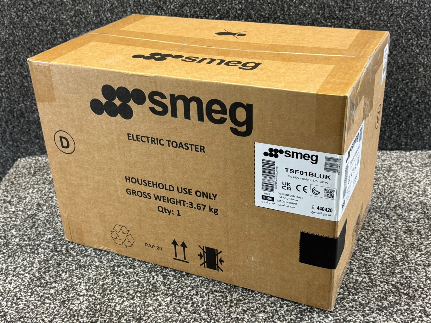 Supplied brand new in its original box, this TSF03BLUK model is a stylish and functional addition to any kitchen. It pairs beautifully with matching Smeg appliances and promises reliable, high-quality performance straight out of the box.