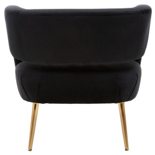 A Black Velvet Curved Cut-Out Design Lounge Chair on gold finish metal legs.