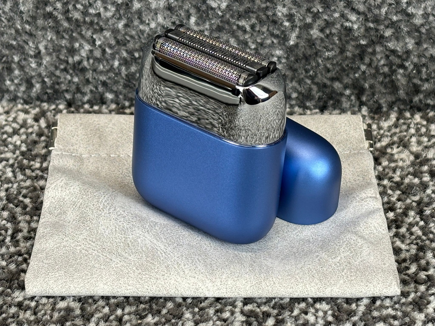 A brand new blue all-metal mini electric shaver designed for convenience, performance, and modern portability. Finished in a sleek metallic blue tone, this compact device offers a premium feel while remaining lightweight and easy to carry, making it ideal for travel, daily grooming, or on-the-go touch-ups. Its durable all-metal construction enhances both longevity and style.
