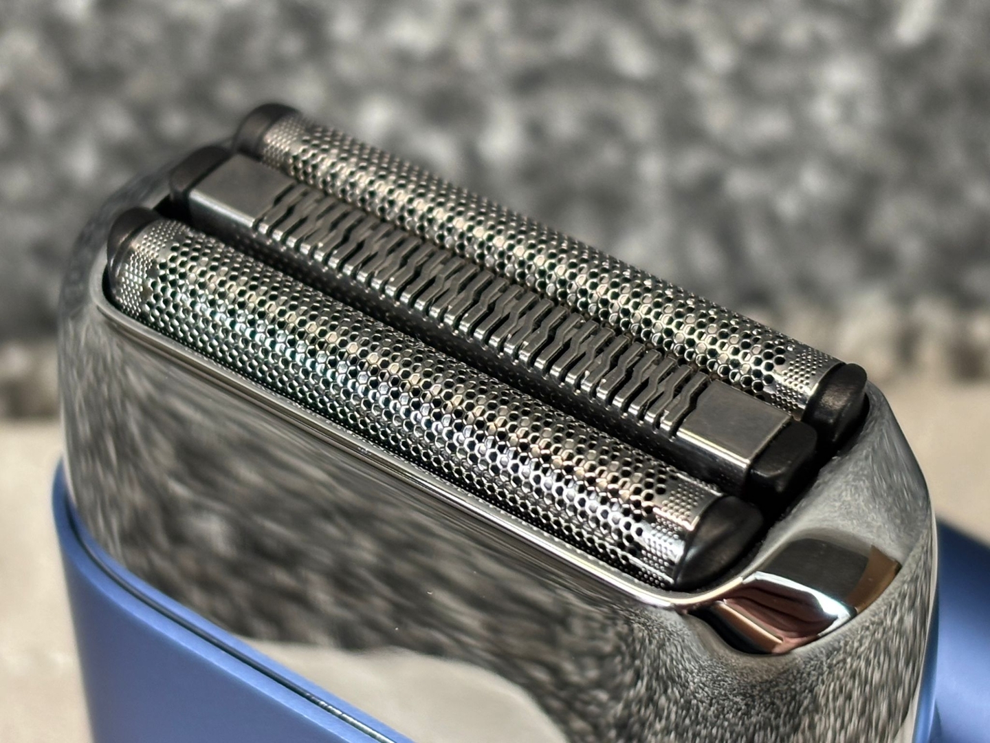 - > Blue All-Metal Mini Electric Shaver with High-Speed Motor & Washable Design