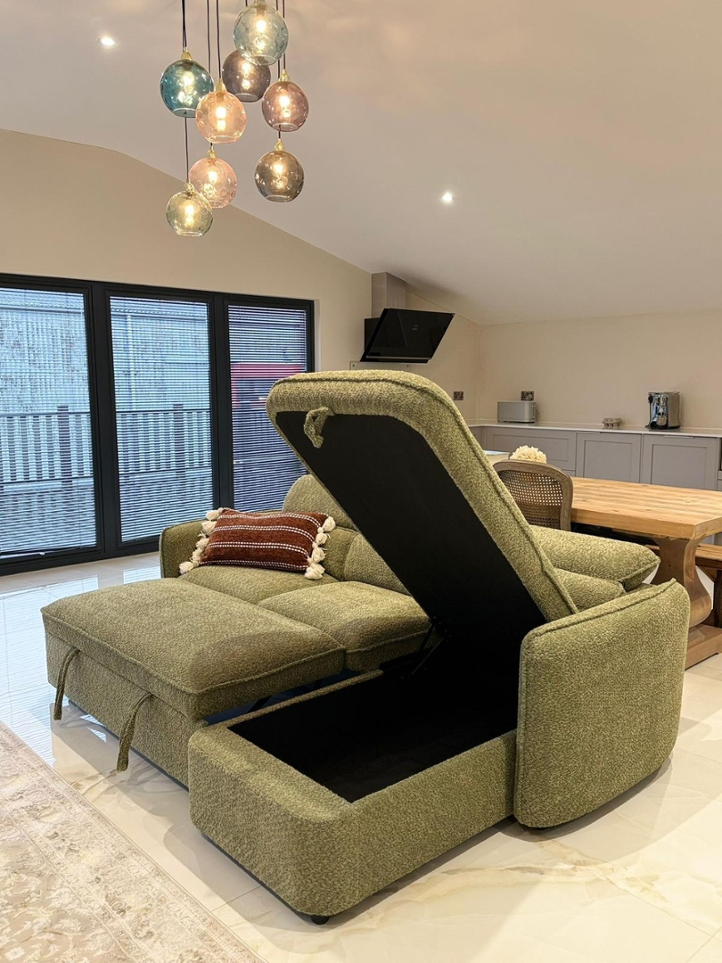 Designed with everyday practicality in mind, the sofa smoothly converts into a sofa bed, making it ideal for accommodating overnight guests without compromising on style. A cleverly integrated lift-up storage compartment is hidden within the chaise, providing ample space for bedding, cushions or throws and helping to keep your living area organised and clutter-free.