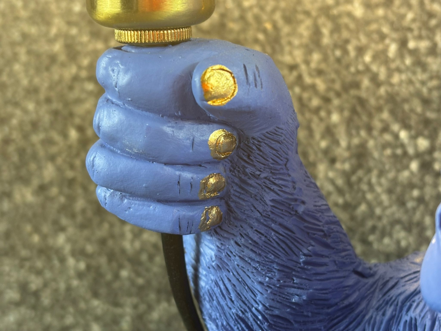 Measuring approximately 35cm in height, 16cm in width, and 18cm in depth, this lamp is compact yet impactful, making it ideal for desks, side tables, or shelves. The warm glow from the exposed bulb contrasts beautifully with the vibrant blue figure, bringing both light and personality to the space.