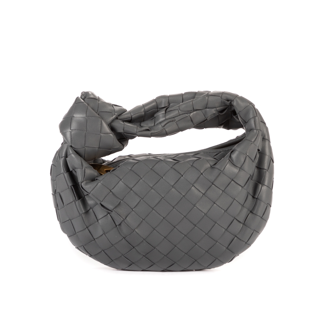 A vintage Bottega Veneta grey calf leather Mini Jodie Knot Tote bag with a certificate of authenticity, Approximately 15cm height, 23cm width.