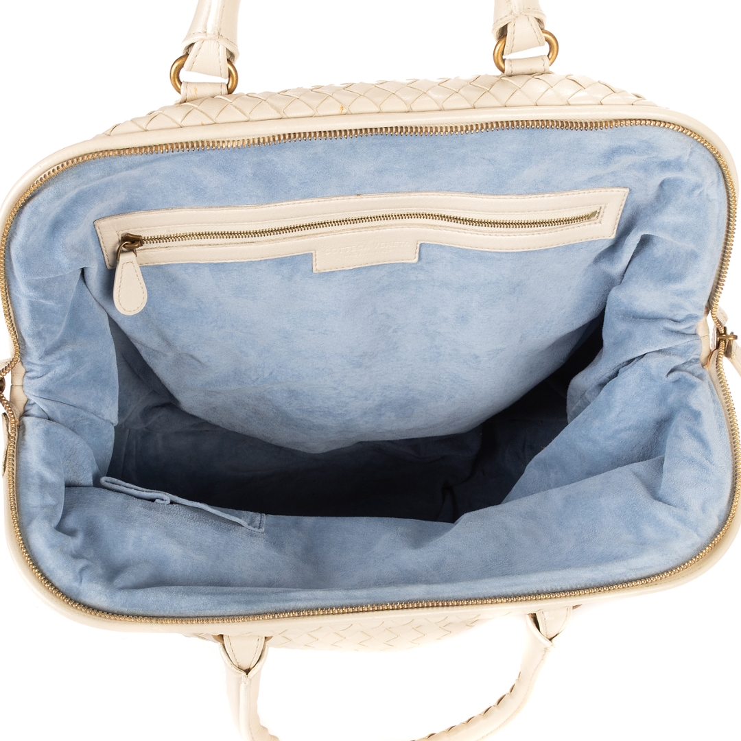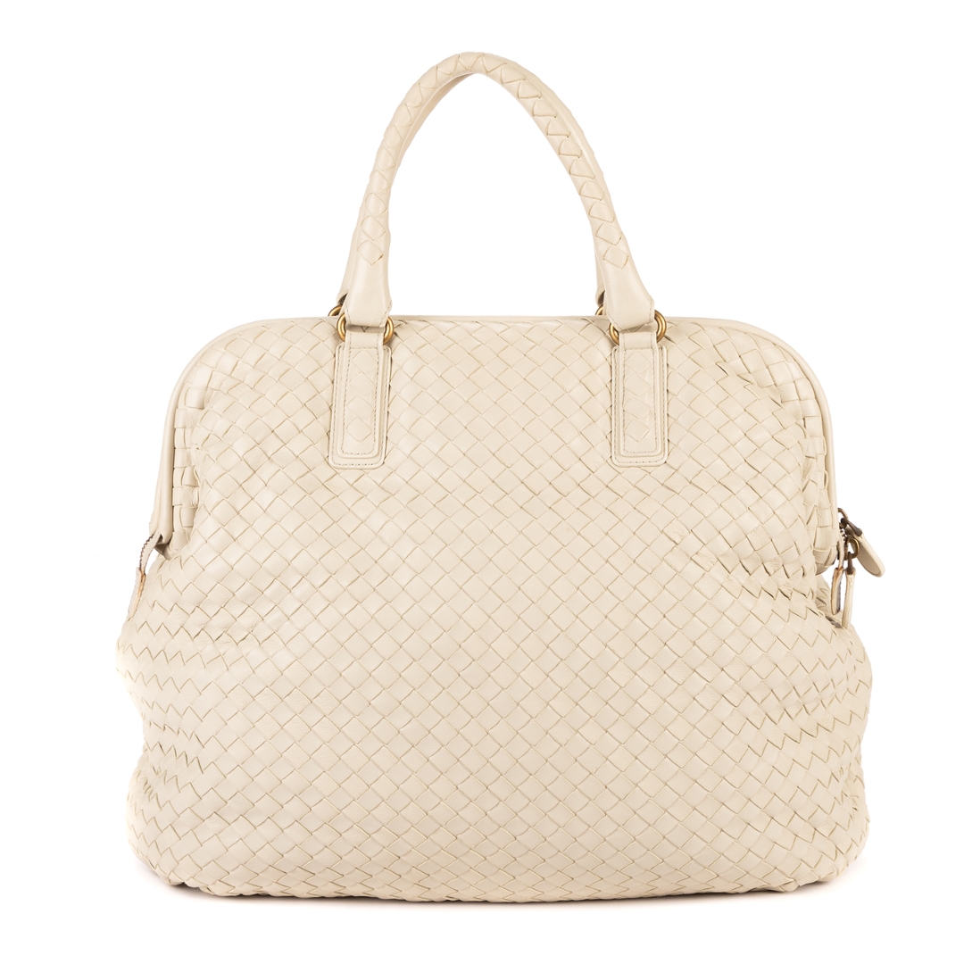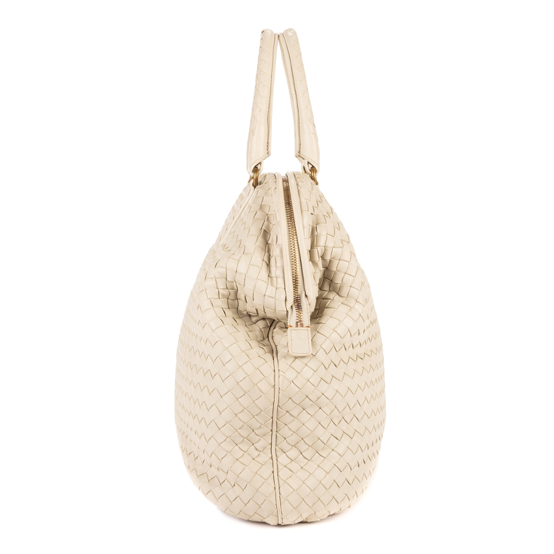 A vintage Bottega Veneta ivory calf leather Vintage Doctors Bowling Tote bag with a certificate of authenticity, Approximately 36cm height, 40cm width.