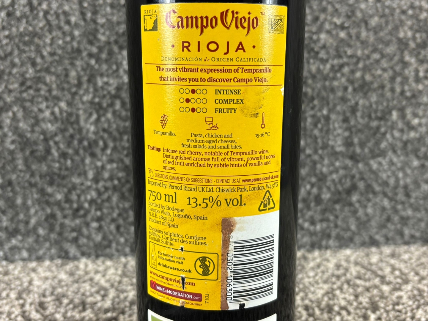- > Bottle of 2018 Campo Viejo Rioja Wine.