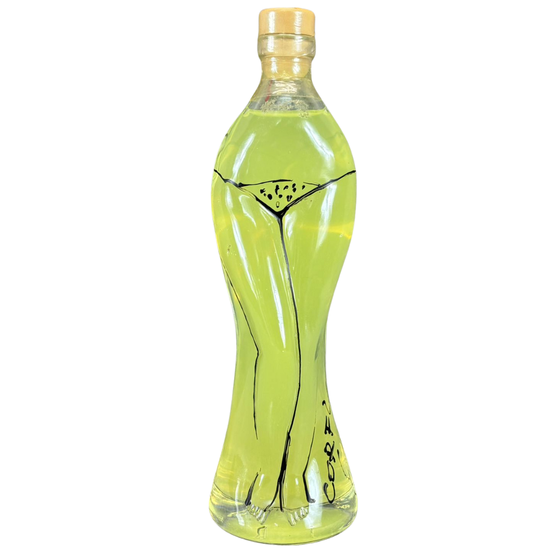 A 20cl bottle of Corfu Limoncello presented in a playful, sculpted glass bottle, this eye-catching piece is as much a decorative keepsake as it is a vibrant Mediterranean spirit. The bottle is shaped to resemble a stylised female form, complete with painted detailing, making it instantly stand out on a shelf or as a fun, memorable gift from Greece. Its bright lemon-yellow liquid adds even more visual appeal, suggesting the refreshing flavour inside.