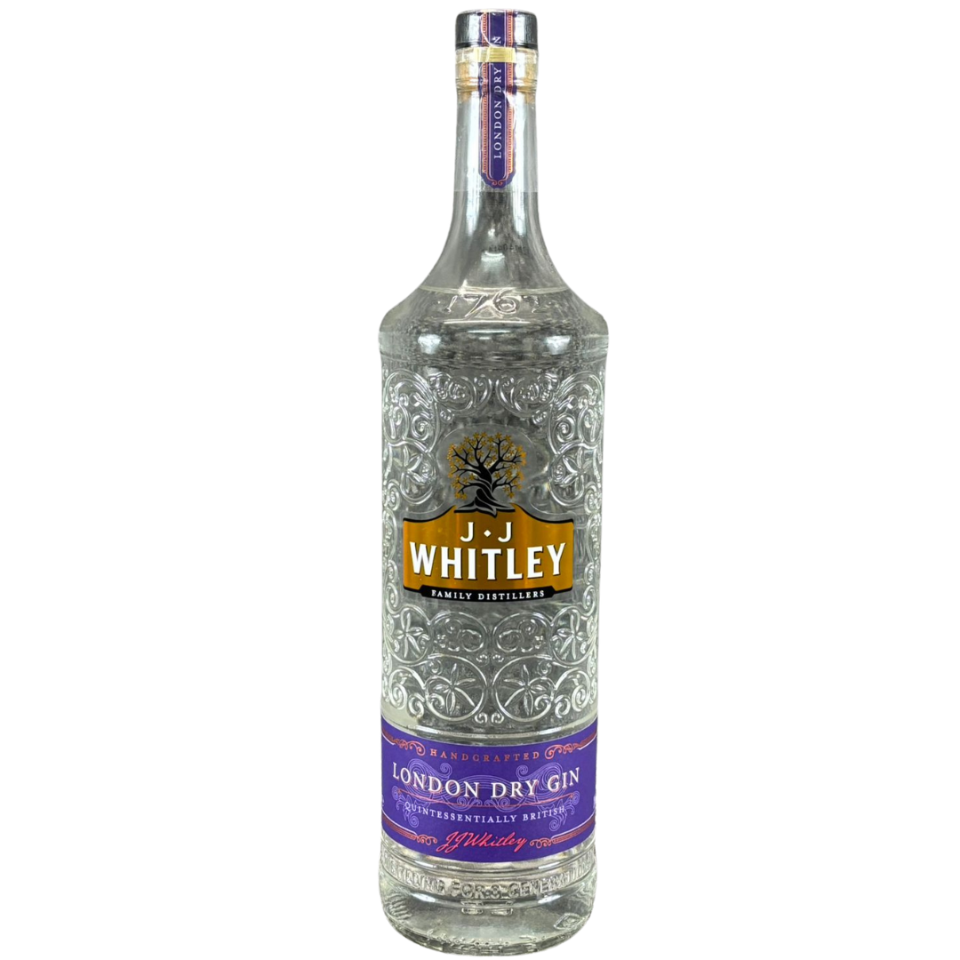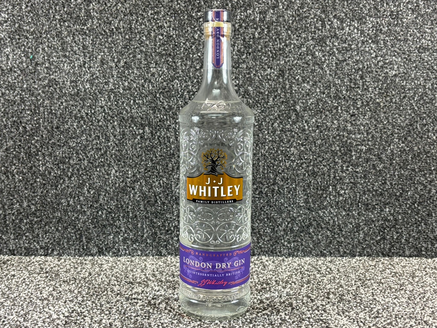 A 1 litre bottle of J.J. Whitley London Dry Gin, a classic,