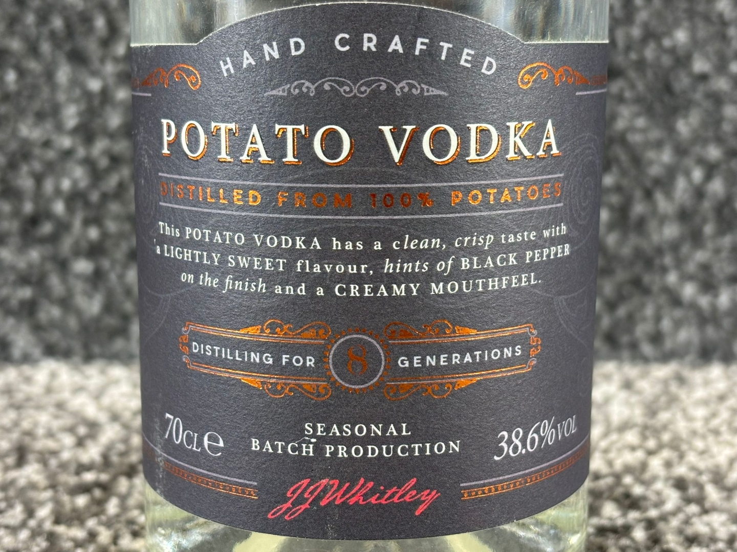 A bottle of J.J. Whitley Potato Vodka. 70cl.