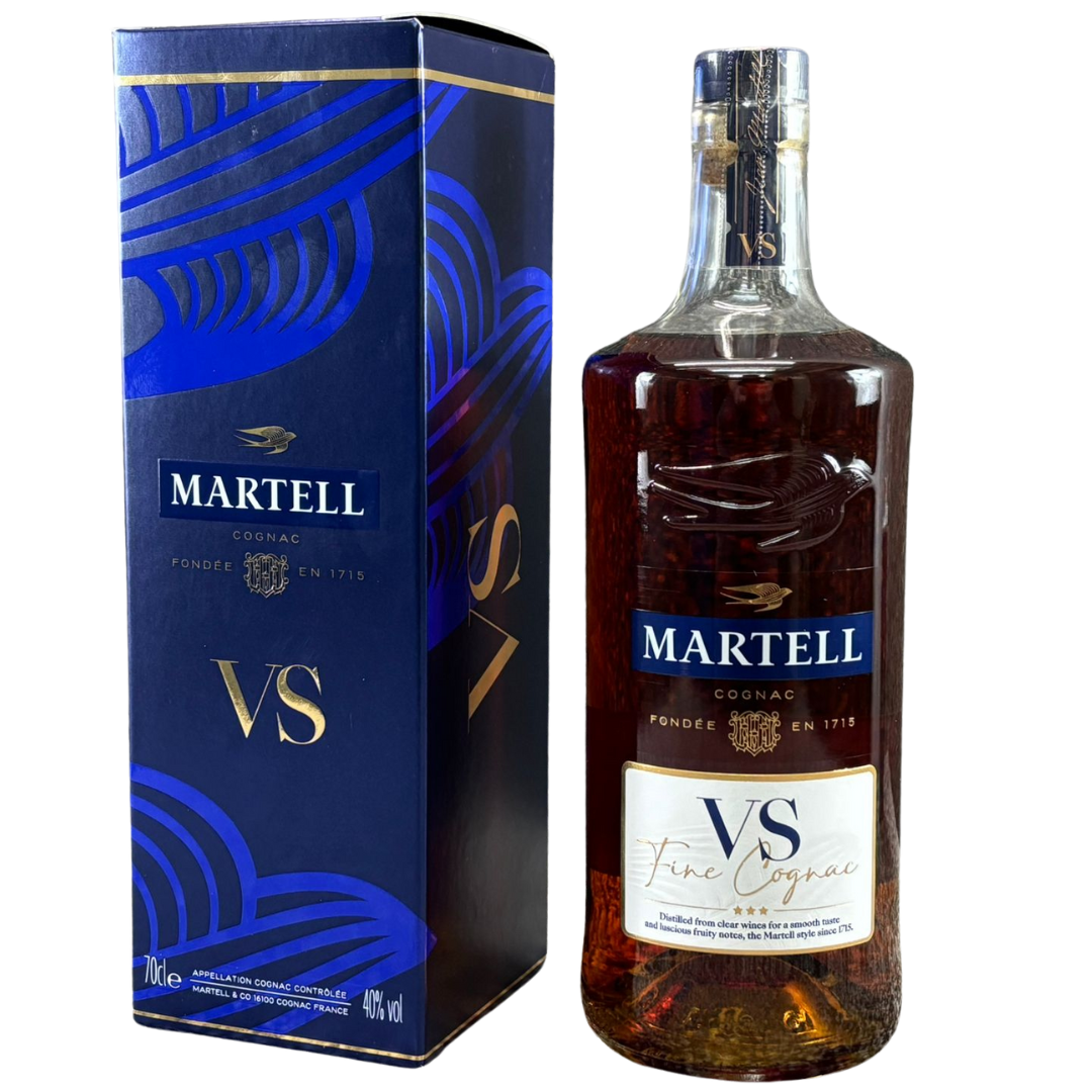 A bottle of Martell VS Fine Cognac presented in its original branded presentation box, offering a refined introduction to one of the most established houses in Cognac. Founded in 1715, Martell is renowned for its elegant style, and this VS expression reflects that heritage with a bright amber tone and a clean, contemporary presentation that makes it ideal for both enjoyment and gifting.