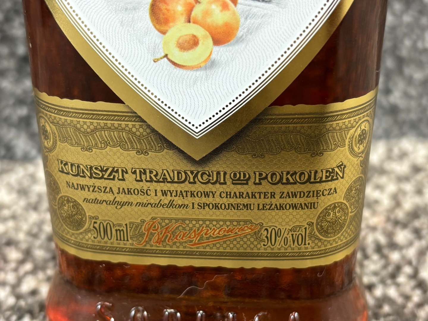- > Bottle of Soplica Mirabelkowa Vodka Liqueur.