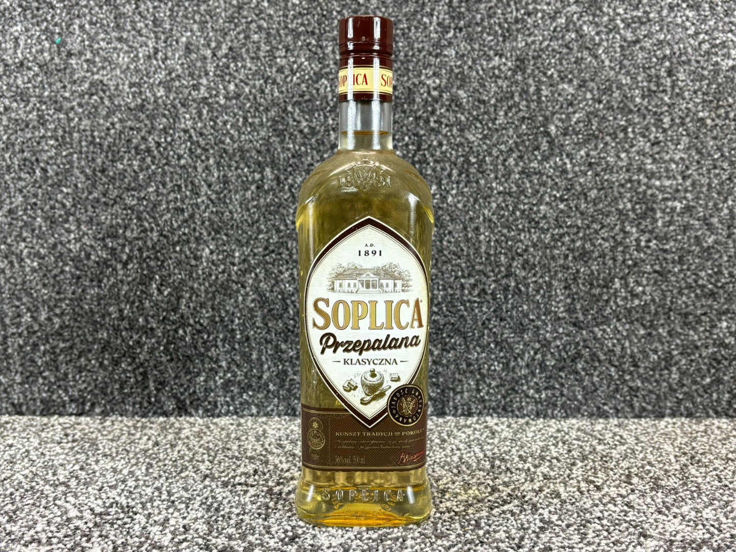 - > Bottle of Soplica Przepalana Klasyczna Vodka Liqueur.
