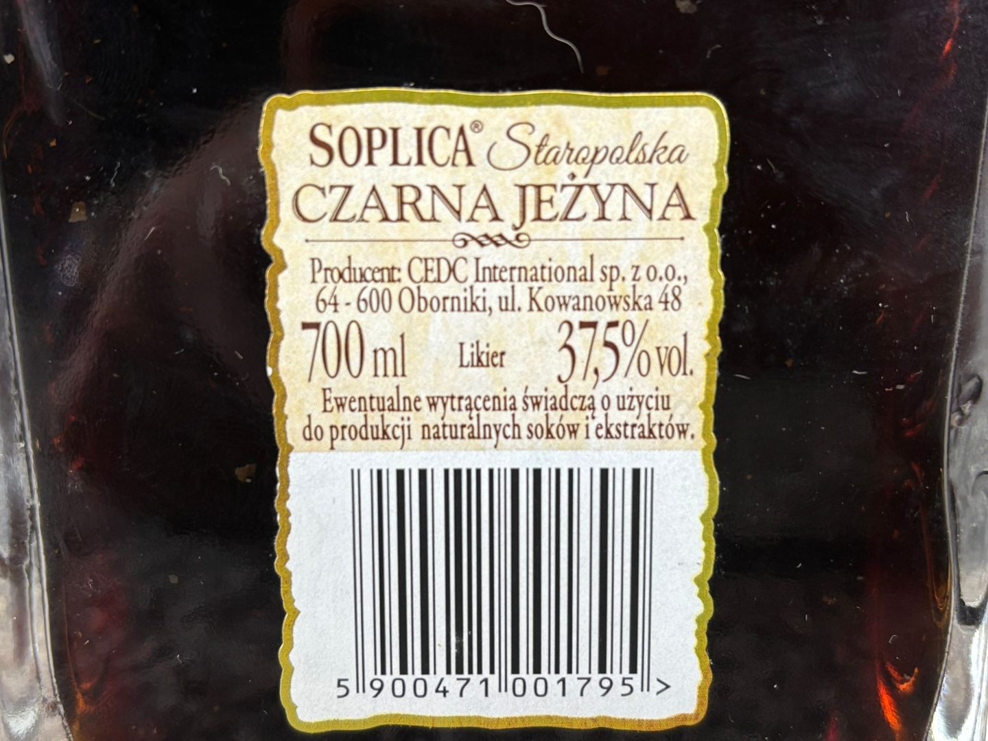 - > Bottle of Soplica Staropolska Czarna Jezyna.