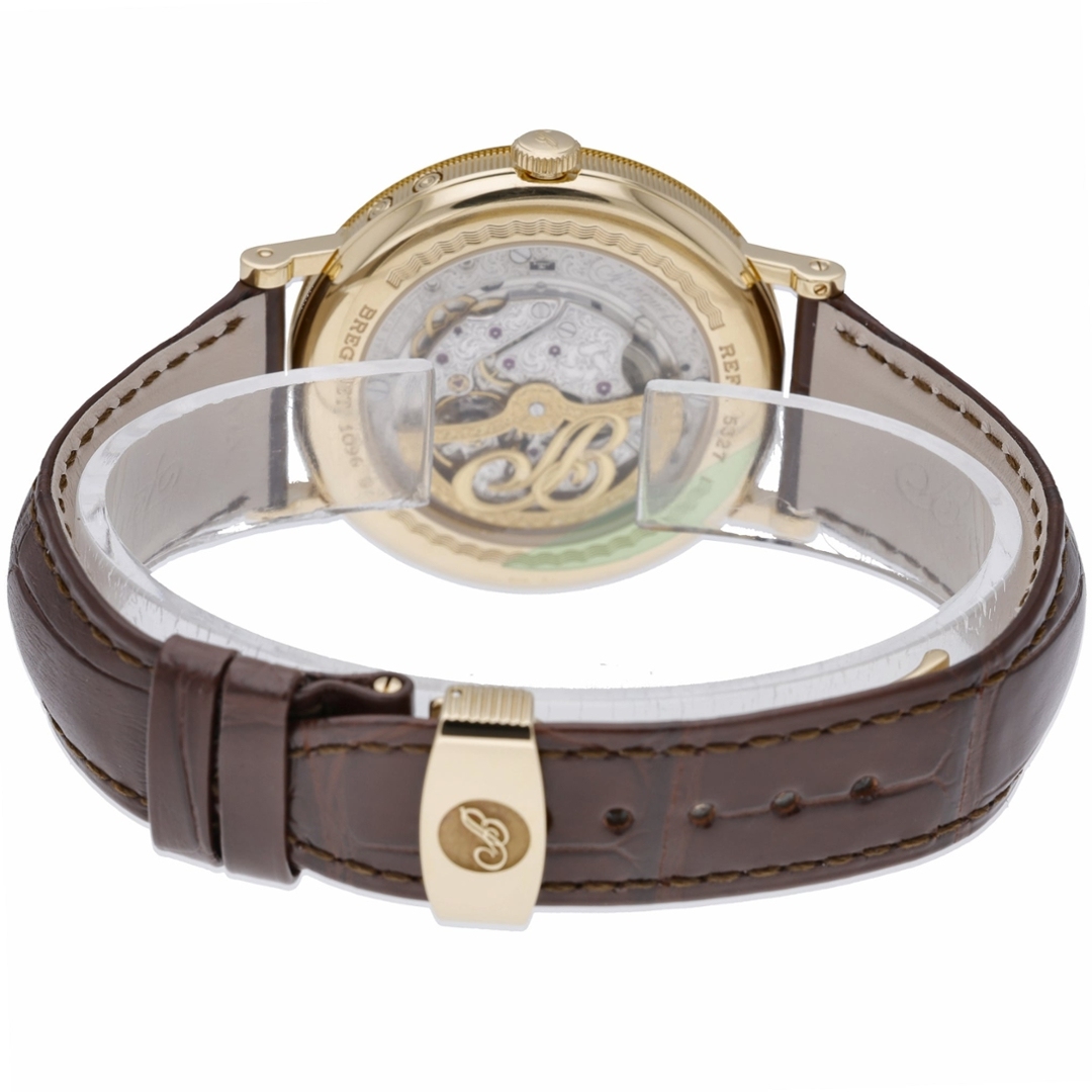 This watch is powered by an automatic perpetual calendar movement, finished to an exceptional standard and designed to correctly account for varying month lengths and leap years without manual adjustment. The movement exemplifies Breguet’s historic mastery of complex complications, combining technical precision with classical elegance.