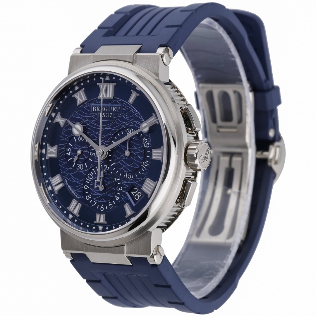 Breguet Marine Chronographe Watch, Blue Rubber Strap with an 18ct White Gold Case & Clasp on a Blue Dial