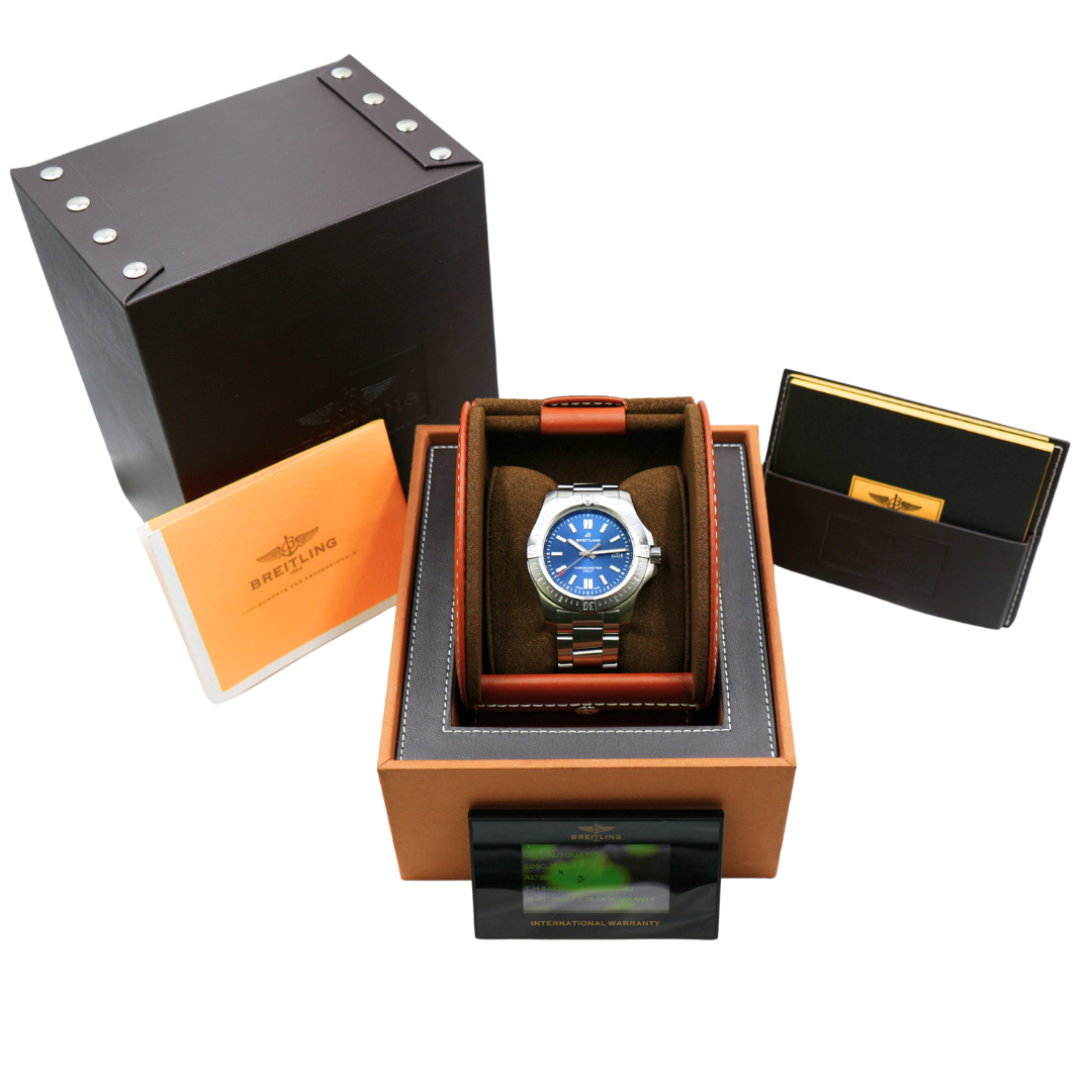 This 2020 example is presented in immaculate condition and comes complete with its original Breitling box, paperwork, and certification. A 12-month WLC warranty also backs it for added assurance. The Breitling Colt Automatic 44 with its dynamic blue dial is a watch of confident style and enduring performance — a perfect reflection of Breitling’s commitment to precision engineering and contemporary design.