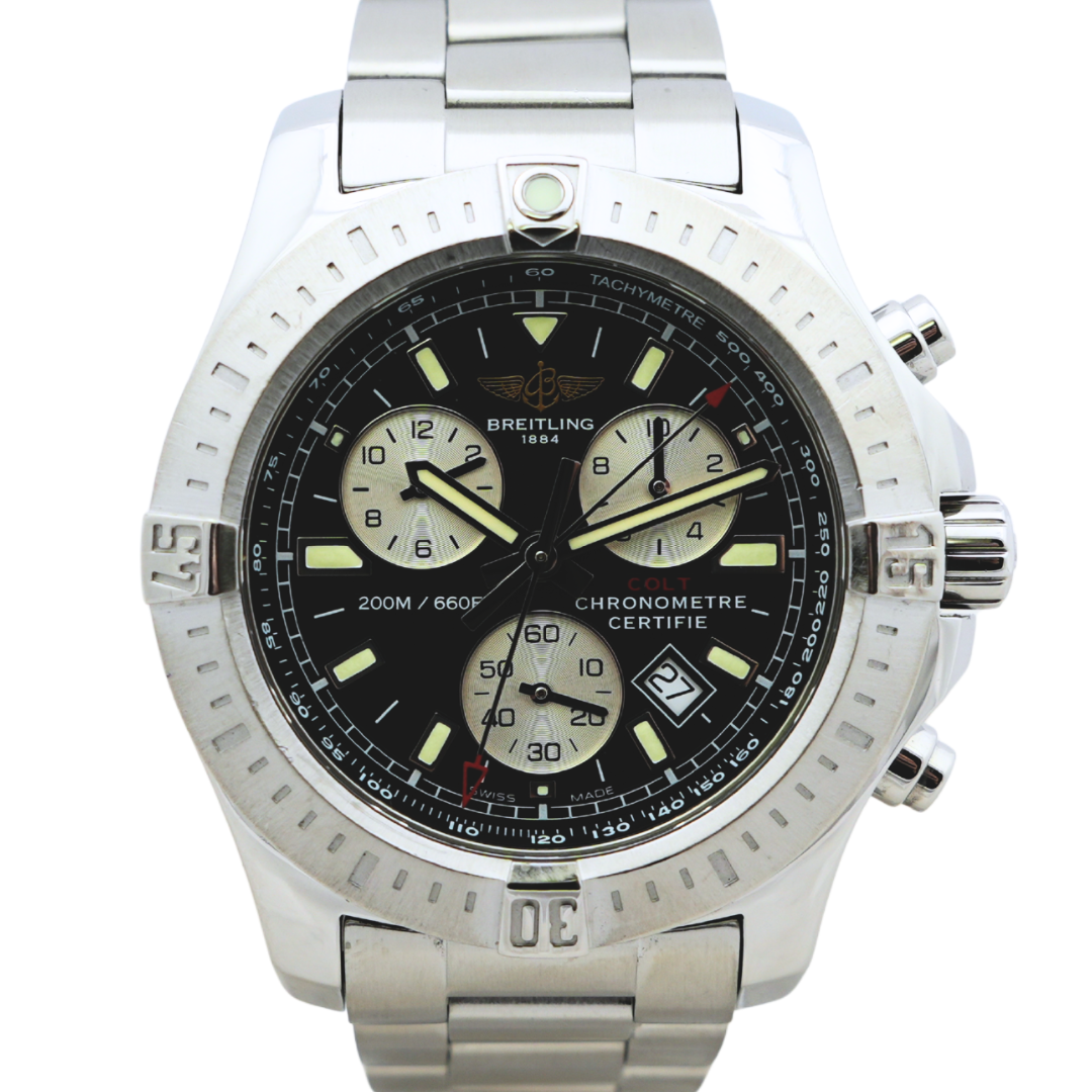 A Breitling Colt Chronograph Watch, Stainless Steel on a Black Dial