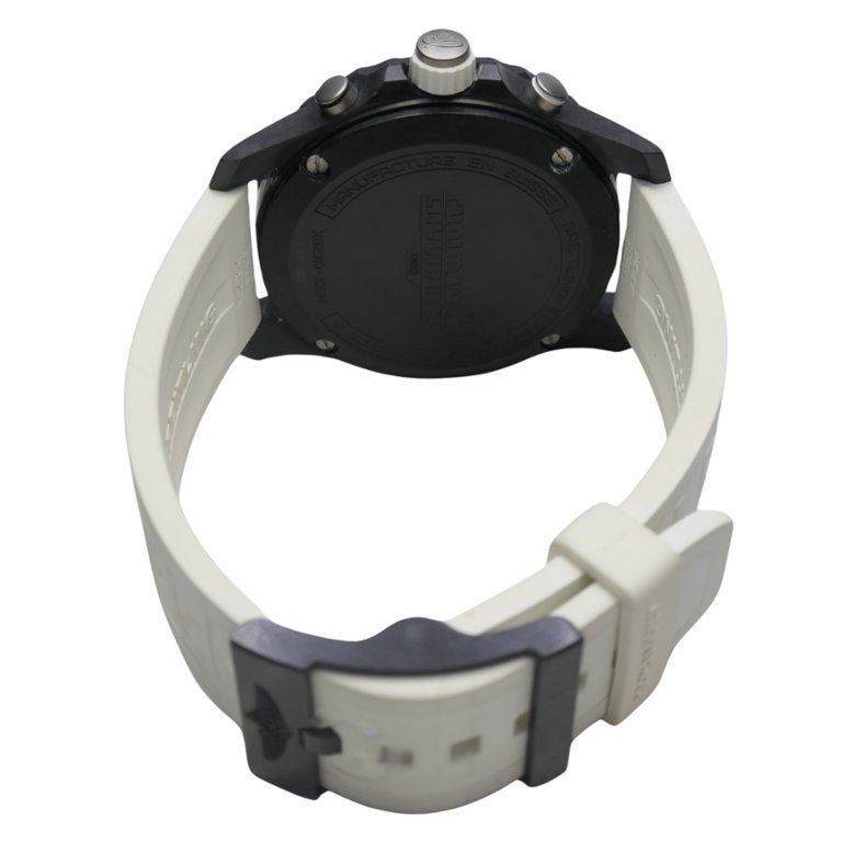 A Breitling Endurance Pro watch presented on a white rubber strap with a lightweight Breitlight case and matching clasp, paired with a striking black bezel and dial. Model number X82310, this 2021 example is designed for performance, precision, and endurance—embodying Breitling’s commitment to creating high-function sports watches for professionals and athletes alike. The 44mm case, made from Breitlight, is exceptionally robust, non-magnetic, and highly scratch-resistant, while being significantly lighter than titanium or steel.