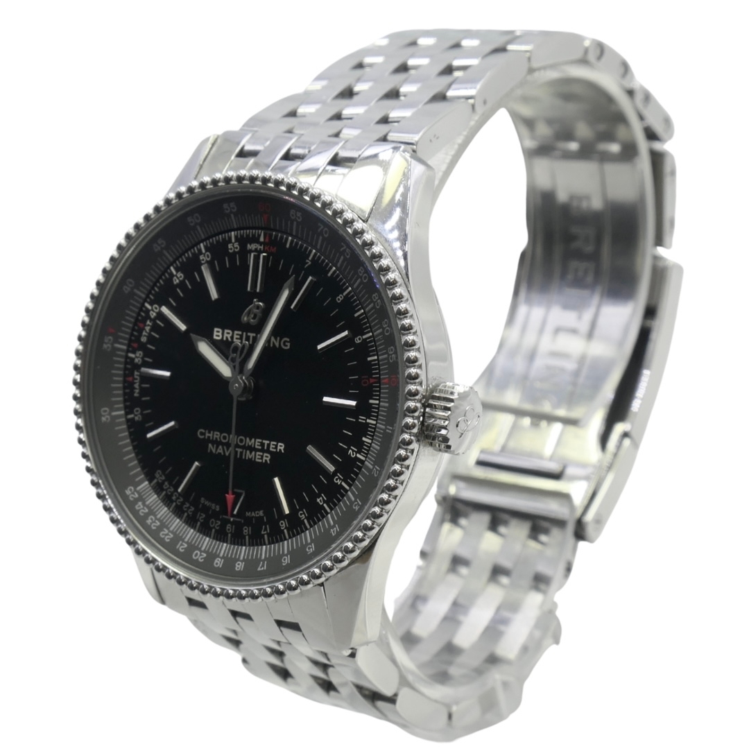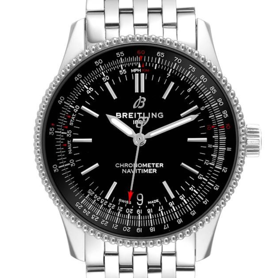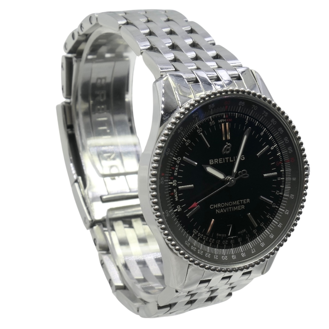 A Breitling Navitimer Watch, Stainless Steel with a Black Dial.