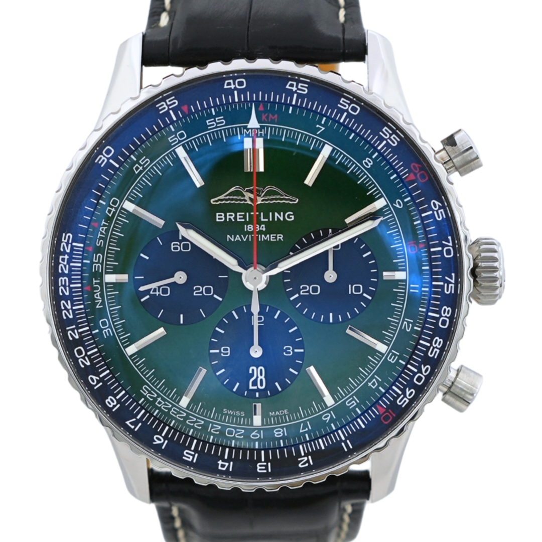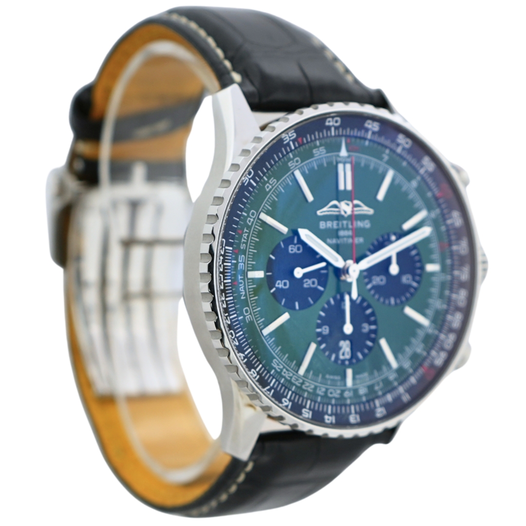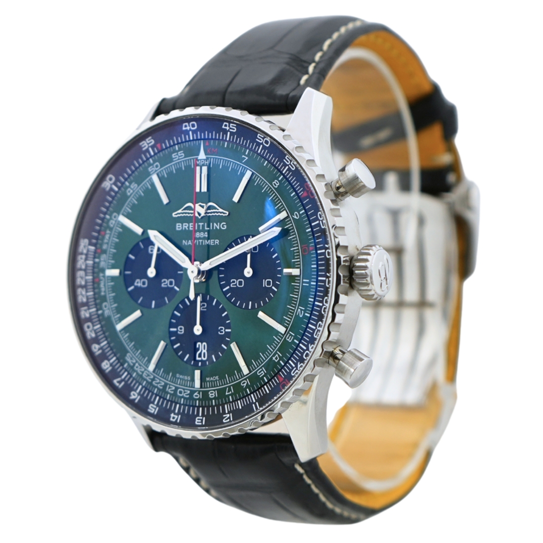 A Breitling Navitimer B01 Chronograph 46, Brown Leather Strap with a Stainless Steel Case & Clasp on a Green Dial