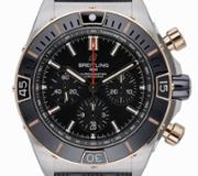 A Breitling Super Chronomat Watch, Stainless Steel & Rose Gold with a Black Bezel & Dial.