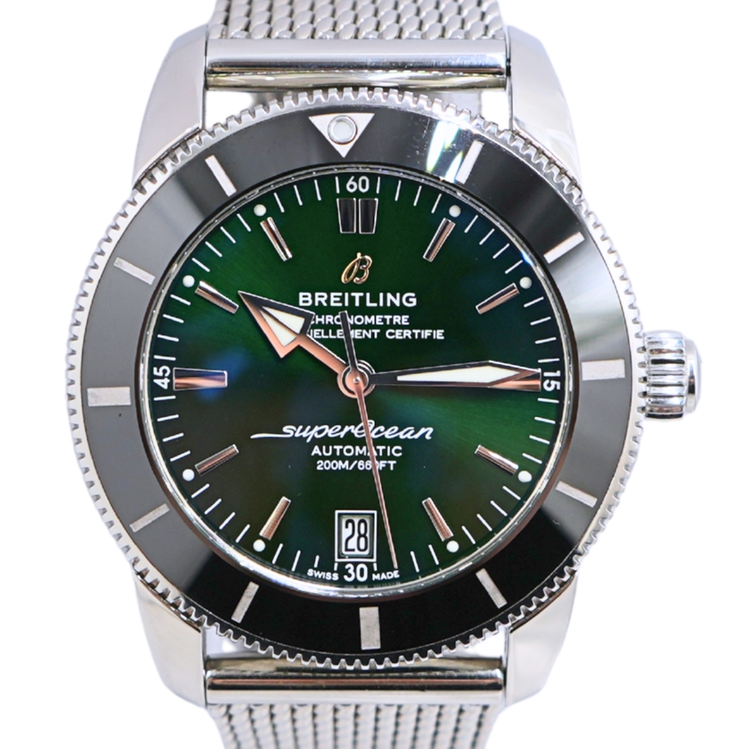 A Breitling Superocean Heritage B20 42 Watch, Stainless Steel with a Black Bezel on a Green Dial
