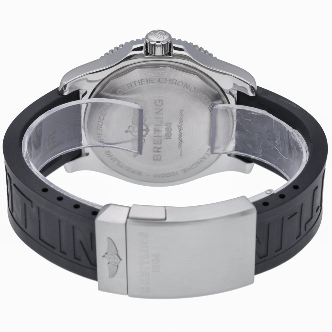 The watch is powered by the Breitling Calibre 17 automatic movement, a COSC-certified chronometer based on a proven Swiss architecture. Known for its reliability and accuracy, the movement supports the Superocean’s professional specification, housed within a robust case offering water resistance to 1,000 metres, making it suitable for serious underwater use as well as daily wear.