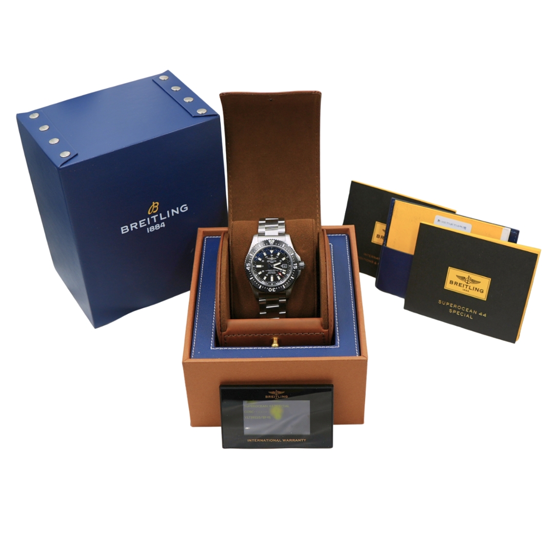 A Breitling Superocean 44 Special, Stainless Steel with a Black Bezel and Dial.