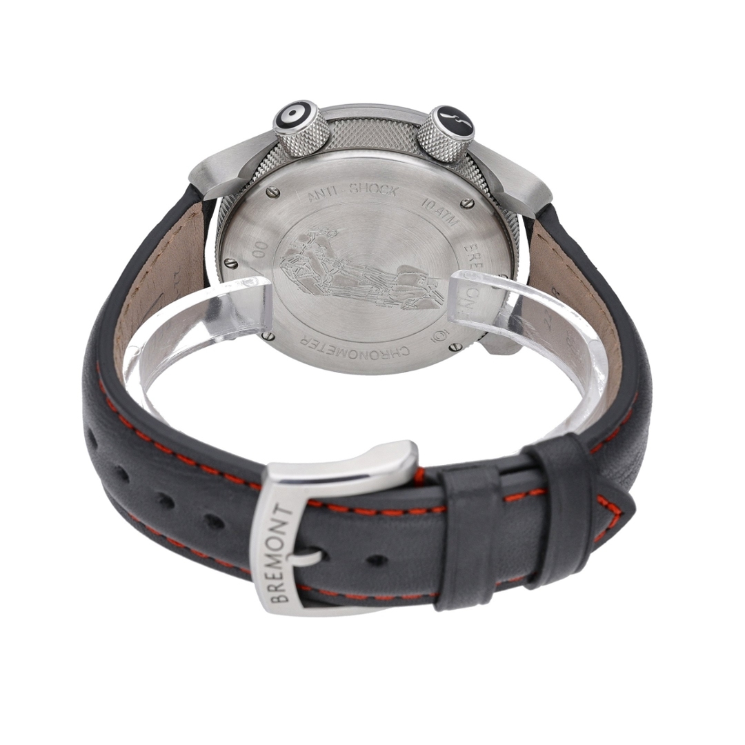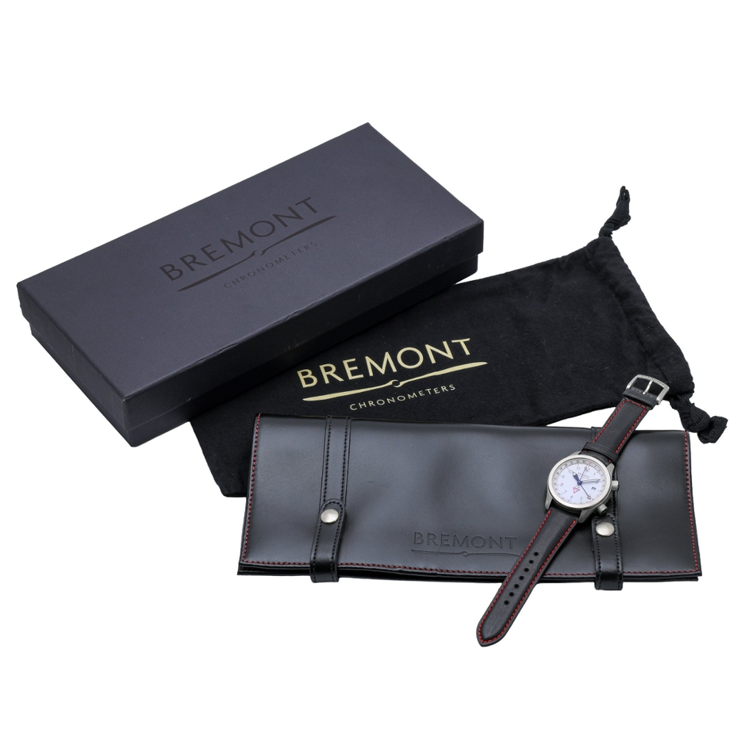 A Bremont Martin Baker Watch, Black Leather Strap with a Stainless Steel Case & Clasp on a White Dial