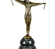 The bronze finish gives the sculpture a timeless, antique appeal, while the black base adds a modern touch, making it a versatile piece for any decor. This artwork is ideal for lovers of equestrian sports, symbolizing the dynamic connection between rider and horse and the excitement of competitive racing. A perfect piece for display in homes, offices, or art collections, it celebrates the beauty and strength of both the horse and its rider.