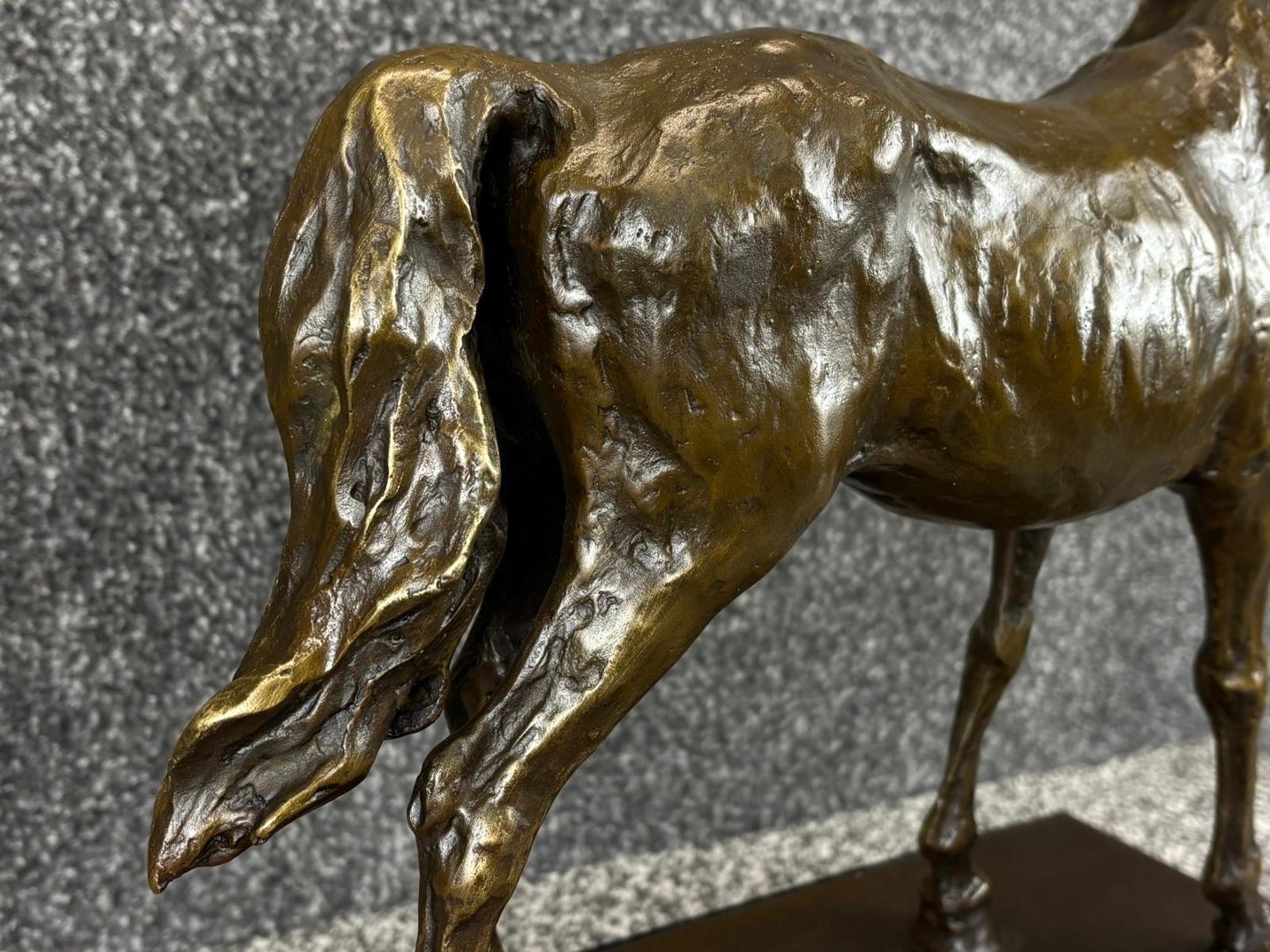 A bronze sculpture of a Standing Horse on a black base. Approx 35cm height, 36cm width, 18cm depth.