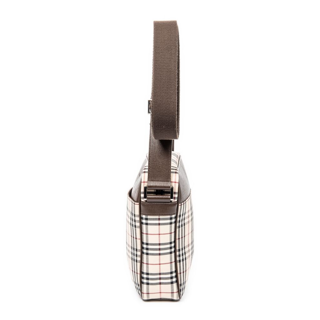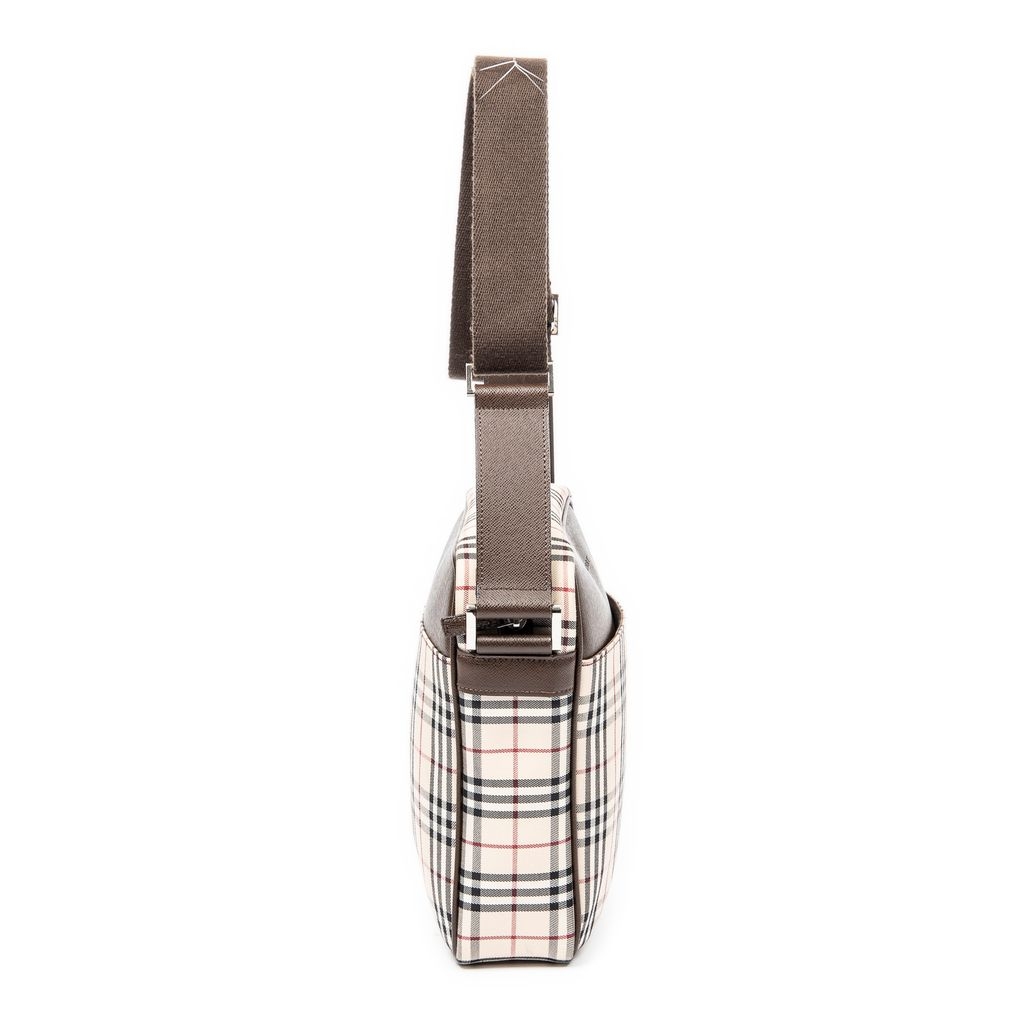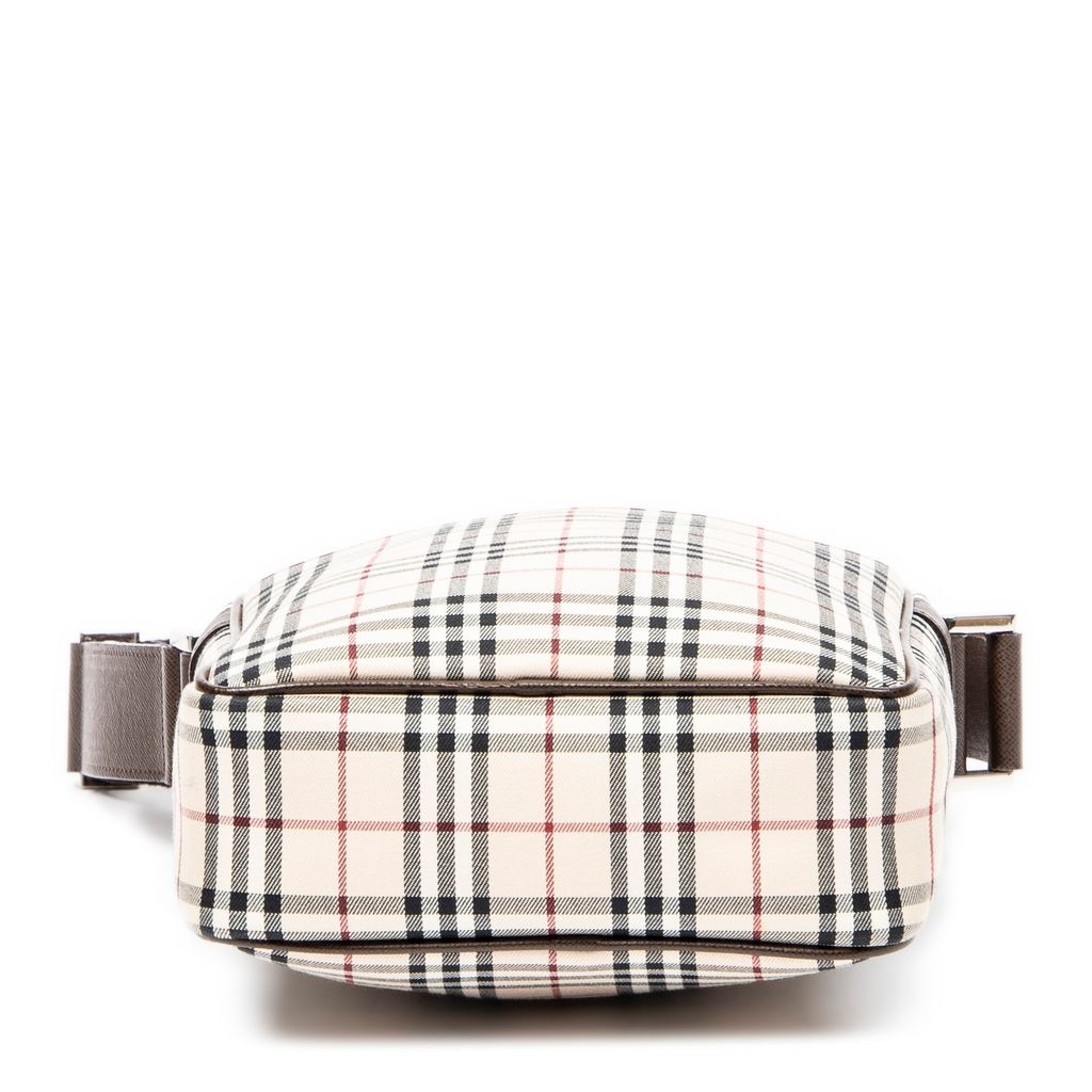 A vintage Burberry beige/brown canvas Front Pocket Crossbody bag with a certificate of authenticity, Approximately 22cm height, 18cm width.