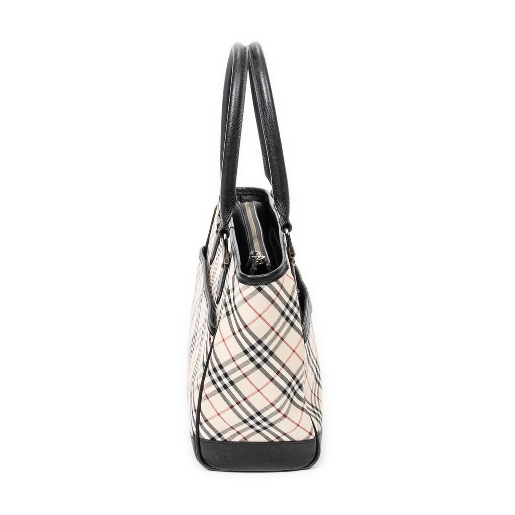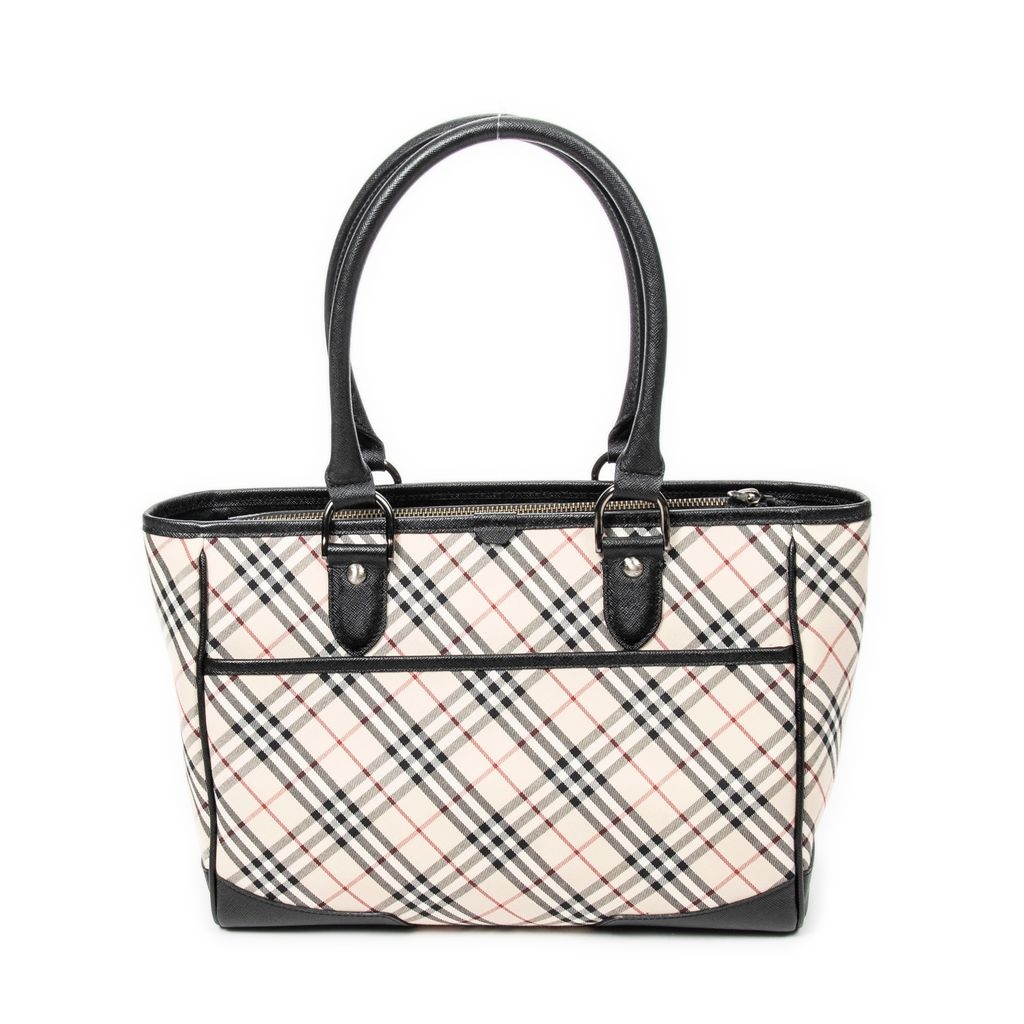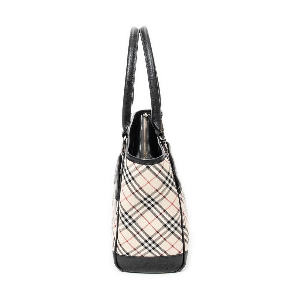 A vintage Burberry beige/black canvas Slip Pocket Zip Tote bag with a certificate of authenticity, Approximately 22cm height, 30cm width.