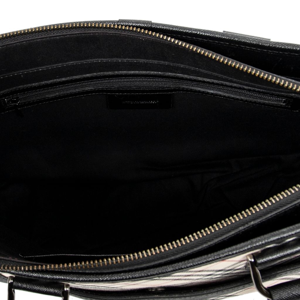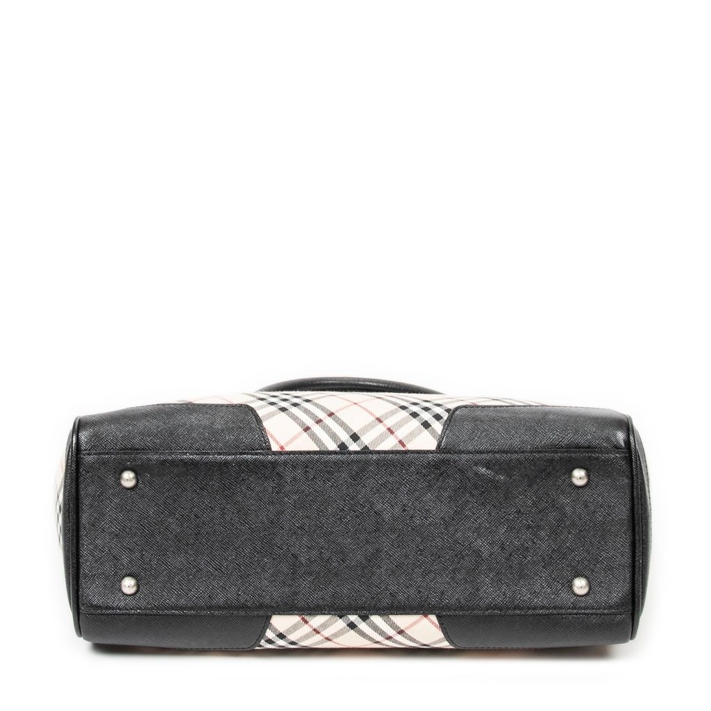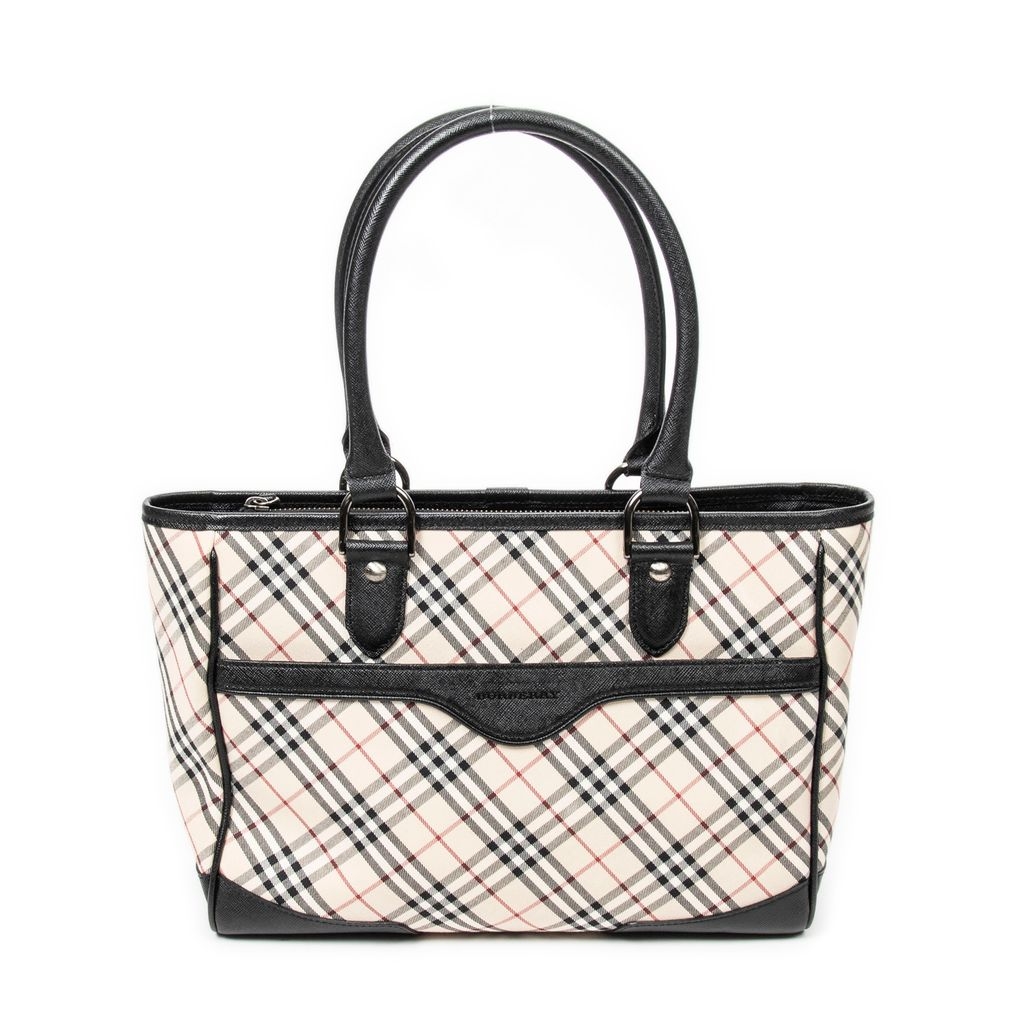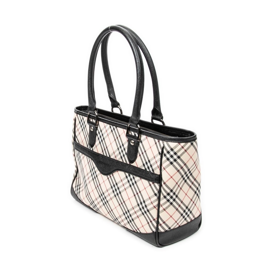 A vintage Burberry beige/black canvas Slip Pocket Zip Tote bag with a certificate of authenticity, Approximately 22cm height, 30cm width.