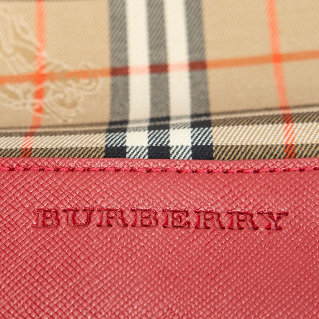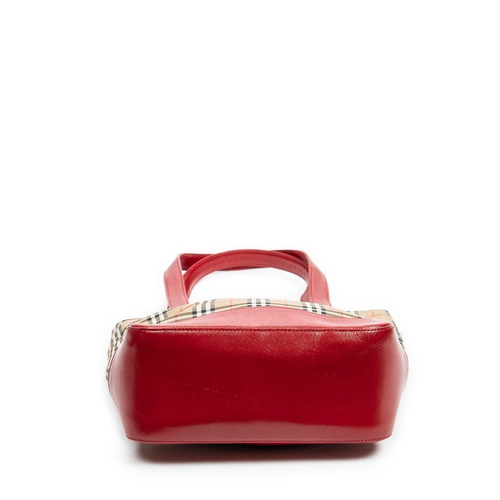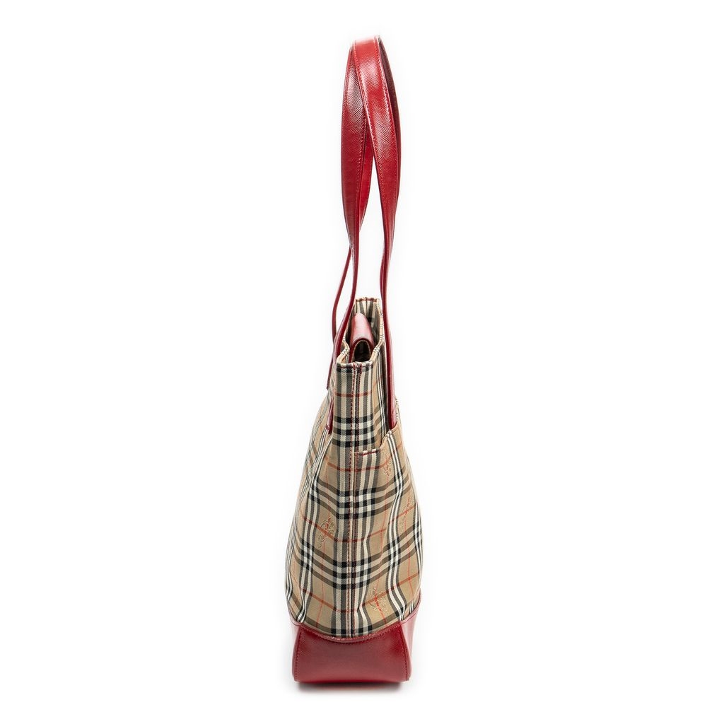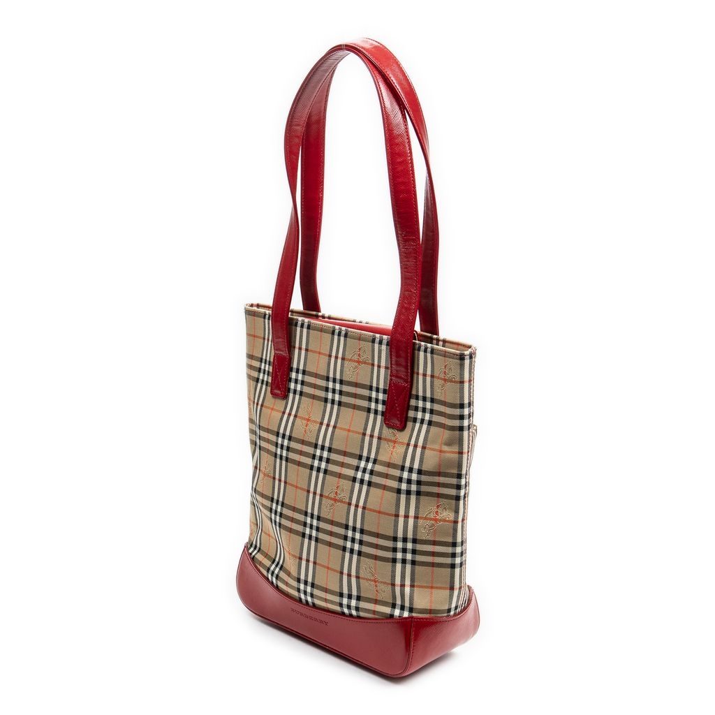 A vintage Burberry beige/red canvas Tall Tote bag with a certificate of authenticity, Approximately 29cm height, 22cm width.
