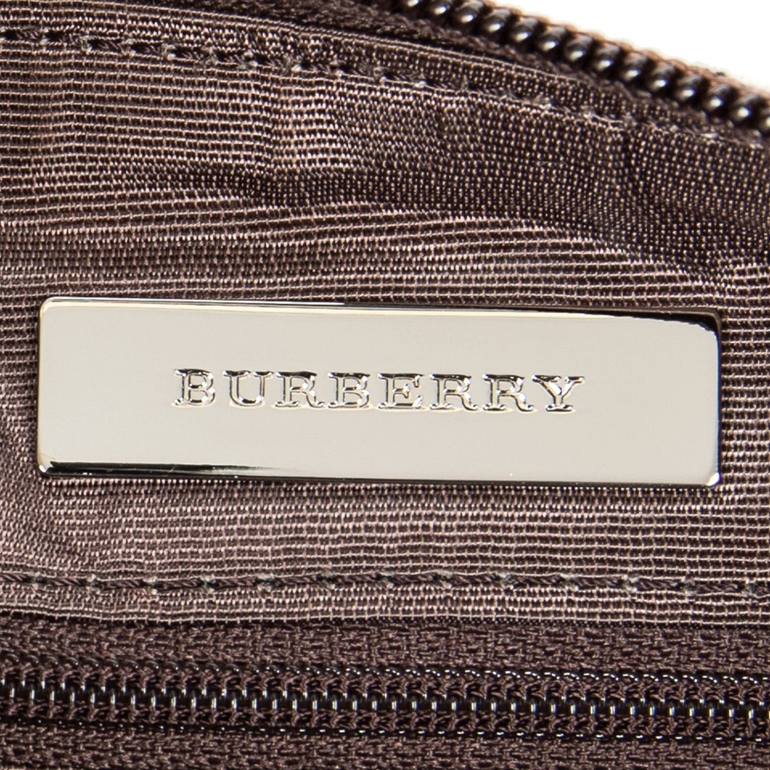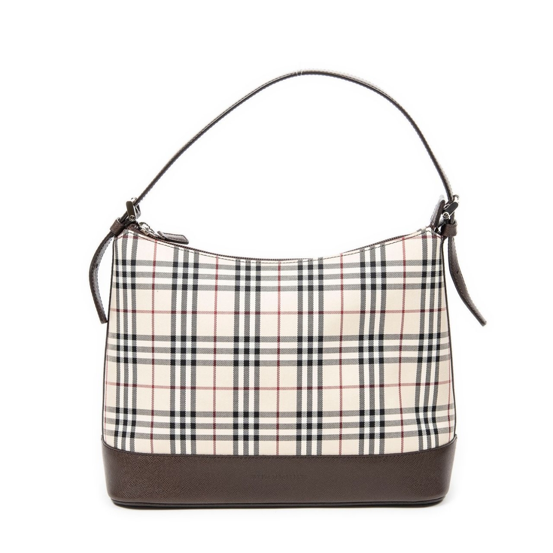 A vintage beige and brown canvas Burberry Zip Hobo bag with a certificate of authenticity, Approximately 22cm height, 28cm width.