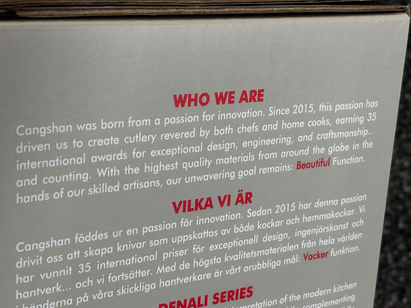 A Cangshan 8 Piece Knife Block Set.