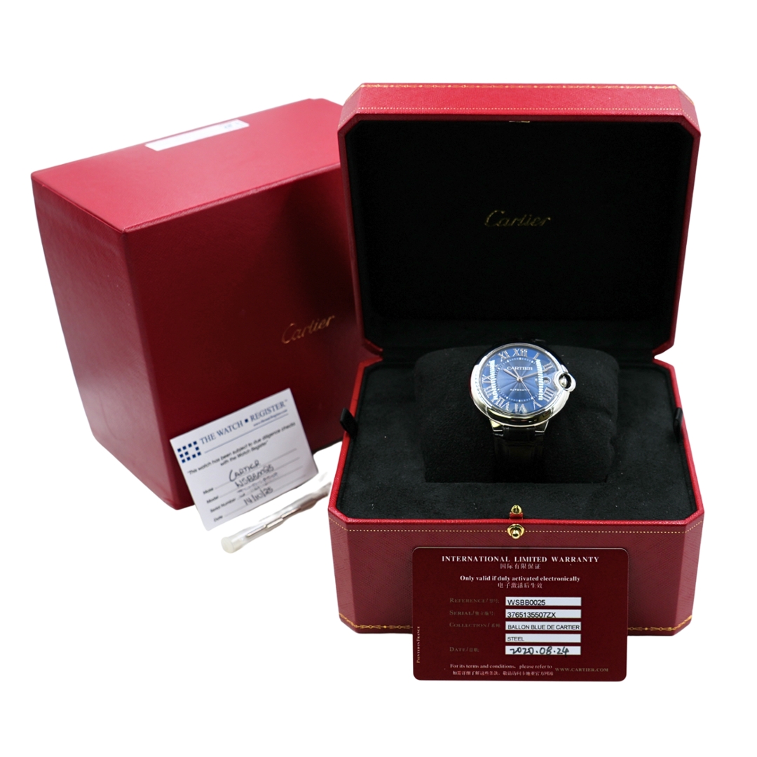 Powered by Cartier’s automatic movement, this 2020 reference WSBB0025 delivers both precision and reliability, offering a seamless fusion of artistry and horological excellence. The domed sapphire crystal and smooth case lines make it as comfortable as it is refined, while the date aperture at three o’clock adds a subtle practical touch to its elegant display.