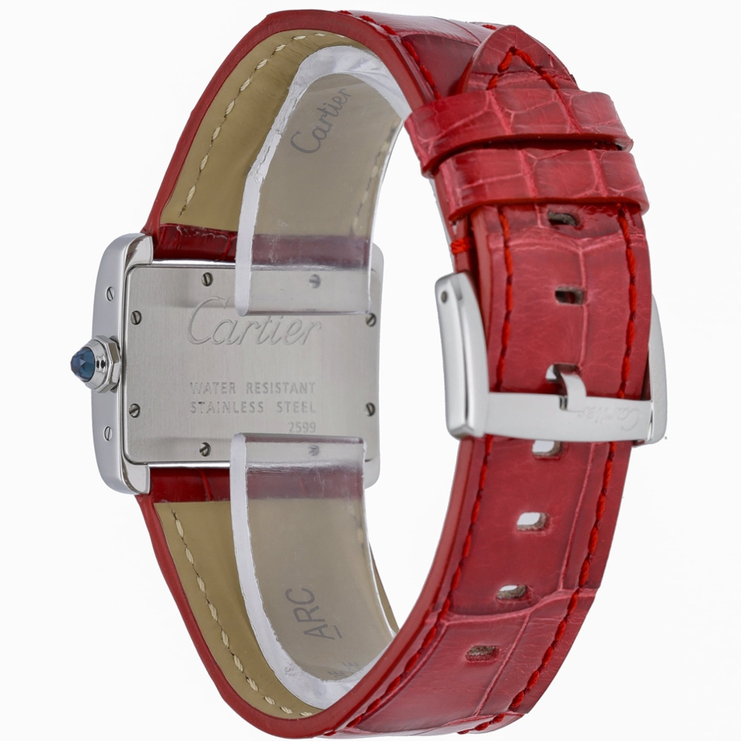 The 32mm rectangular stainless steel case frames a crisp white dial adorned with Cartier’s signature elongated Roman numerals and a refined chemin de fer minute track. Elegant blued steel hands provide a striking contrast against the dial while maintaining excellent legibility. The bezel and side bracelets are set with rows of brilliant-cut diamonds, adding a luxurious jewellery element that enhances the watch’s refined character. Powering the watch is a reliable quartz movement, ensuring precise timekeeping while maintaining the case's slim, balanced proportions.