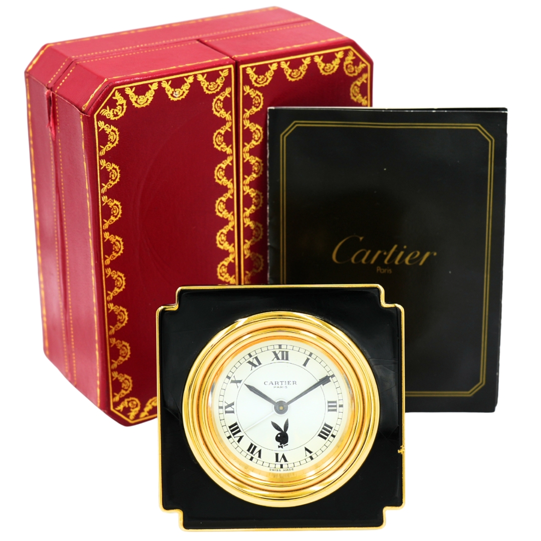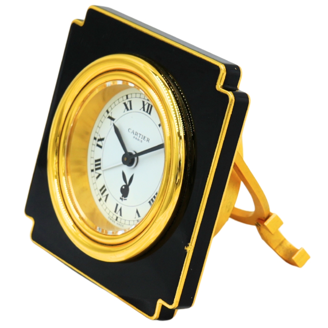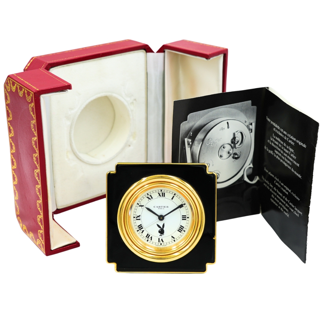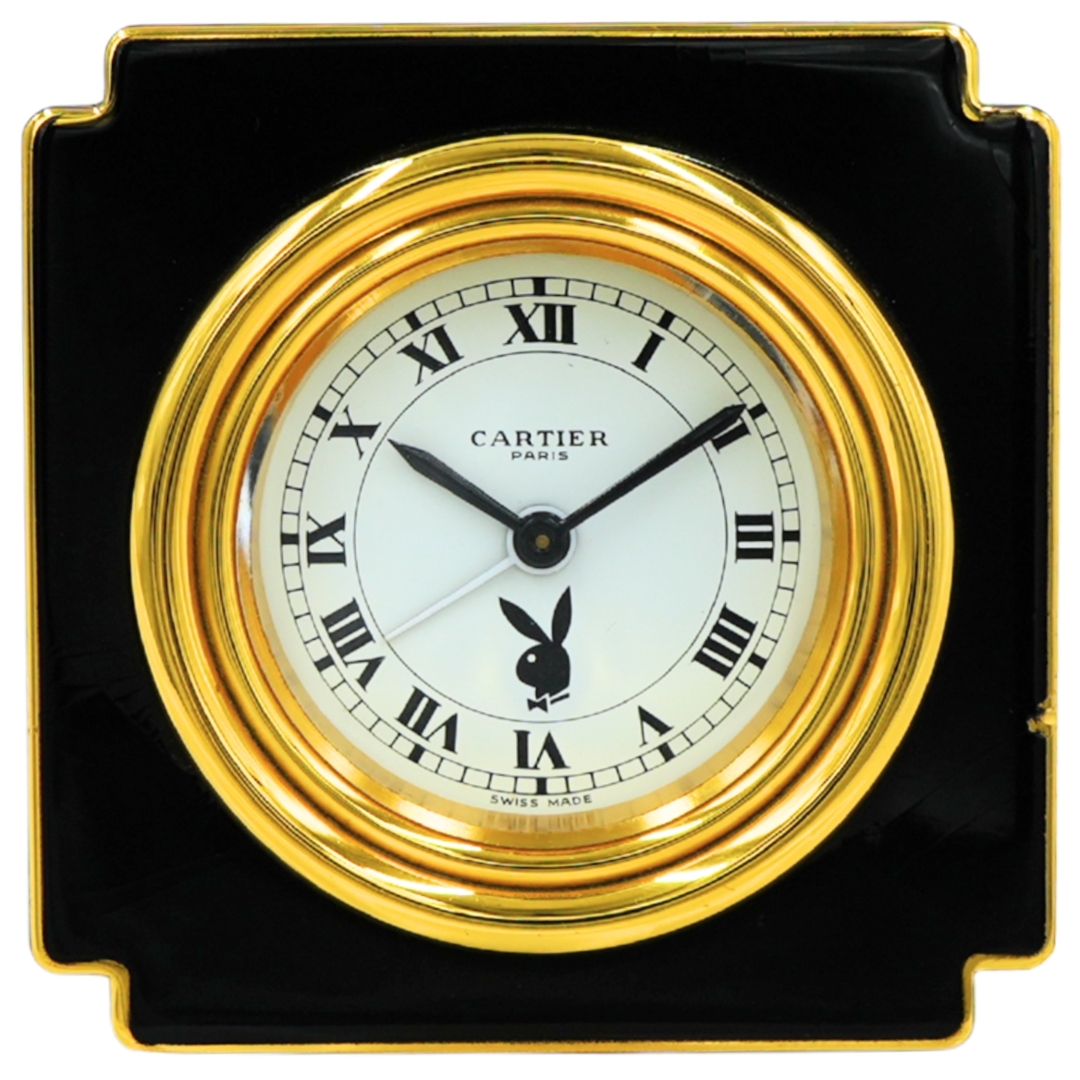 Interestingly, during the same period, Cartier produced a small number of special-commission desk clocks featuring the iconic Playboy Bunny logo on the dial, supplied as exclusive corporate gifts for Playboy executives and partners. These co-branded examples have since become particularly desirable among collectors.