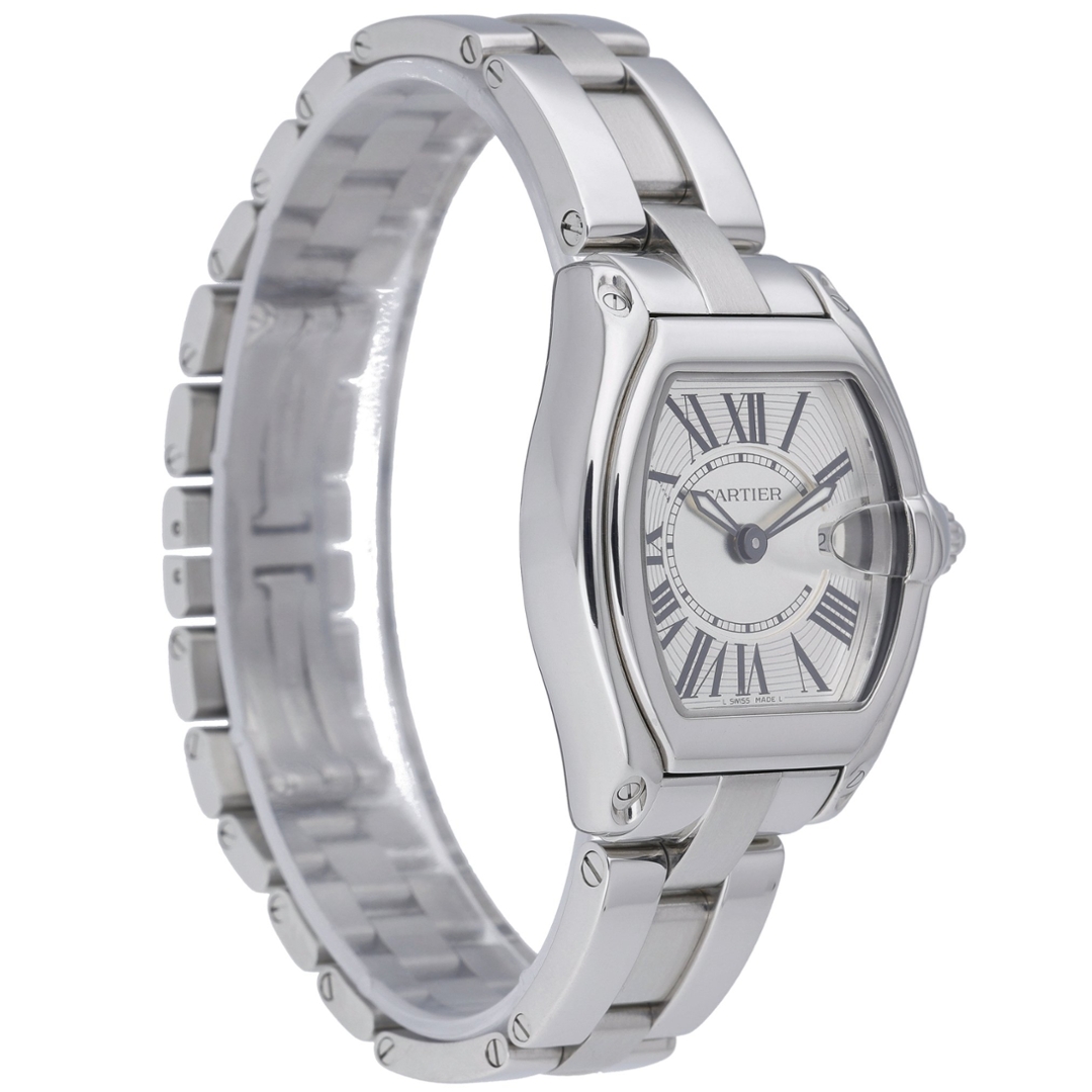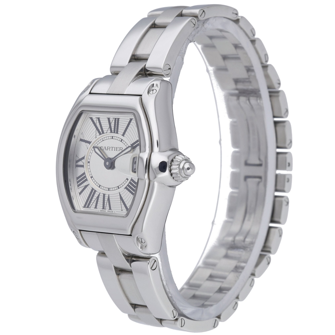 A Cartier Roadster watch, crafted in stainless steel and paired with a striking silver dial that highlights its distinctive tonneau-shaped case. Model number W62016V3 (reference 2675), this 2006 example reflects Cartier’s unique blend of classic design and modern sport-luxury appeal.