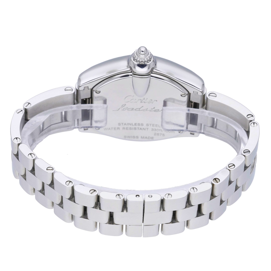 A Cartier Roadster Watch that radiates feminine elegance with a bold presence, this 2001 model 2675 offers a unique twist on a modern classic. Crafted in stainless steel with the unmistakable tonneau-shaped 31mm x 37mm case, this version is elevated by an exquisite after-set diamond bezel, adding brilliant sparkle and glamour to the iconic Roadster silhouette.