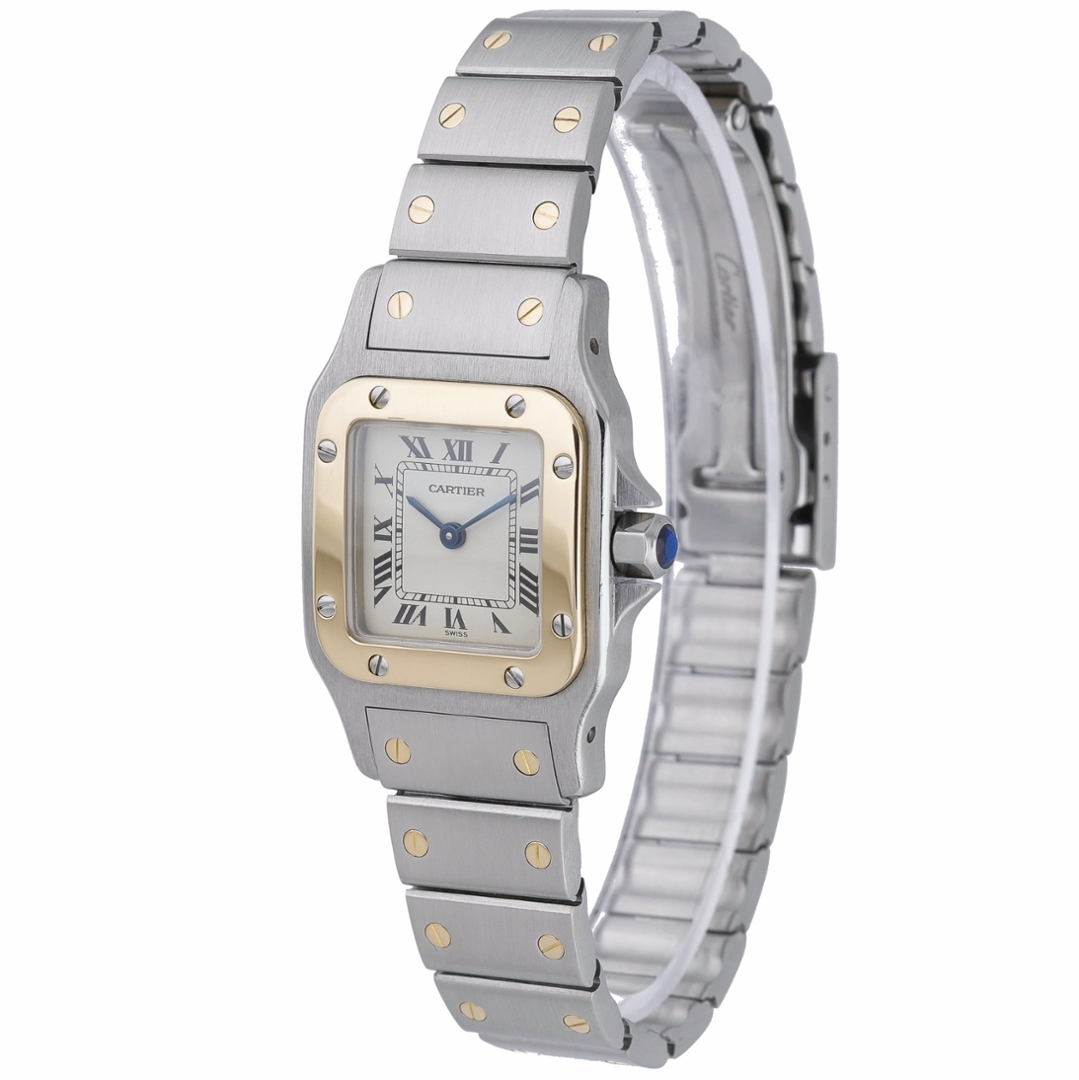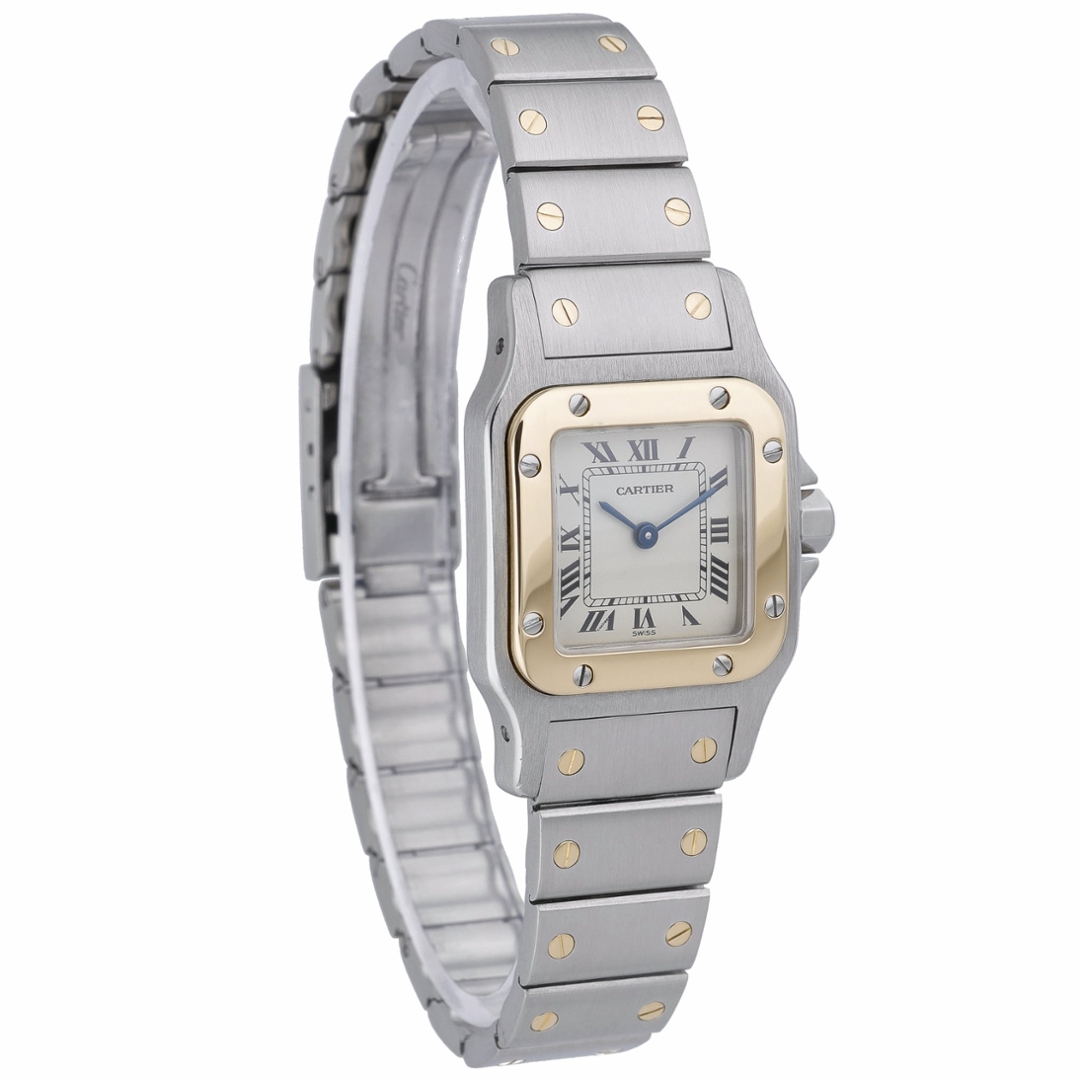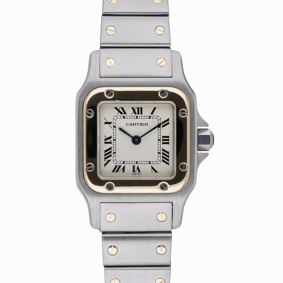 The watch is the reference 1567 and is powered by the Cartier Calibre 687 quartz movement, delivering dependable accuracy with minimal upkeep. Produced around 2000, this later-generation Santos Galbée features a slimmer, more ergonomic case design while preserving the timeless proportions that have made the model so enduring. Its compact size and balanced bi-metal finish make it an elegant and versatile choice for everyday wear.