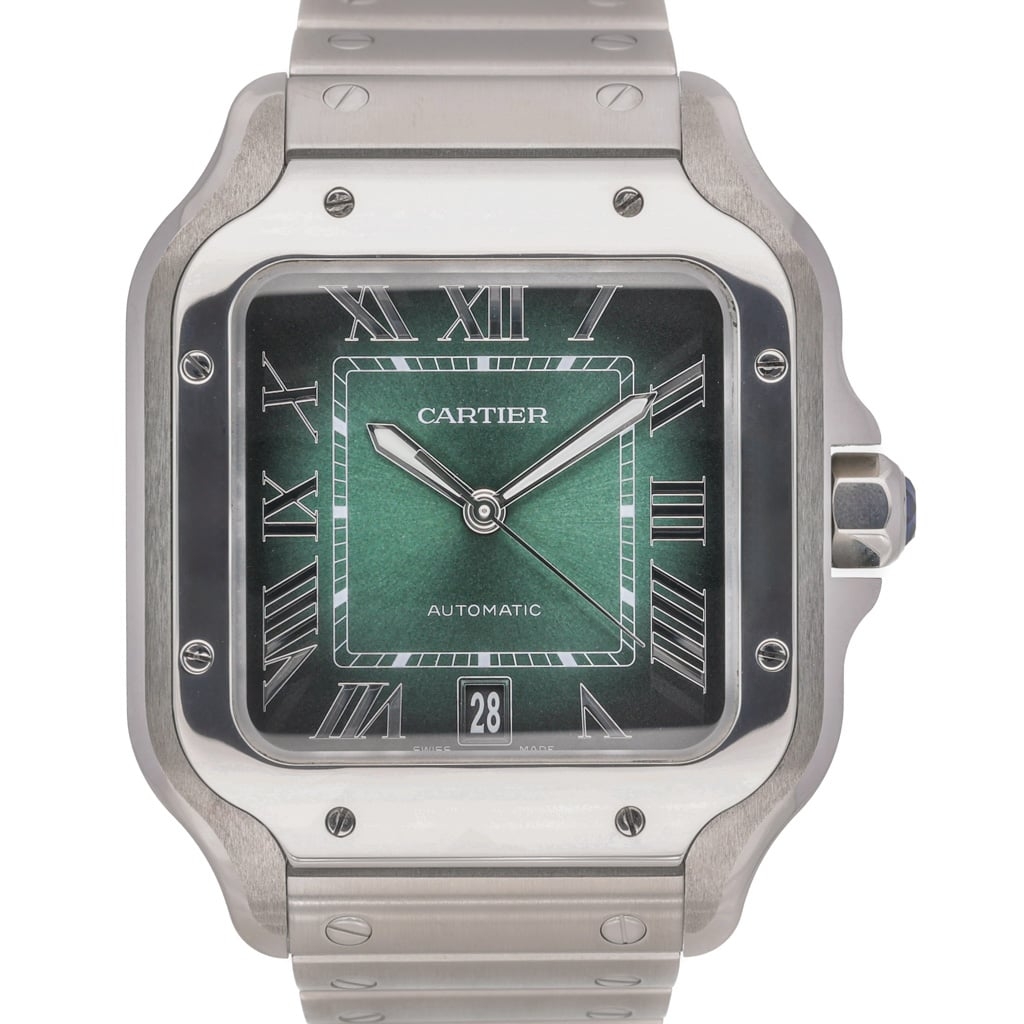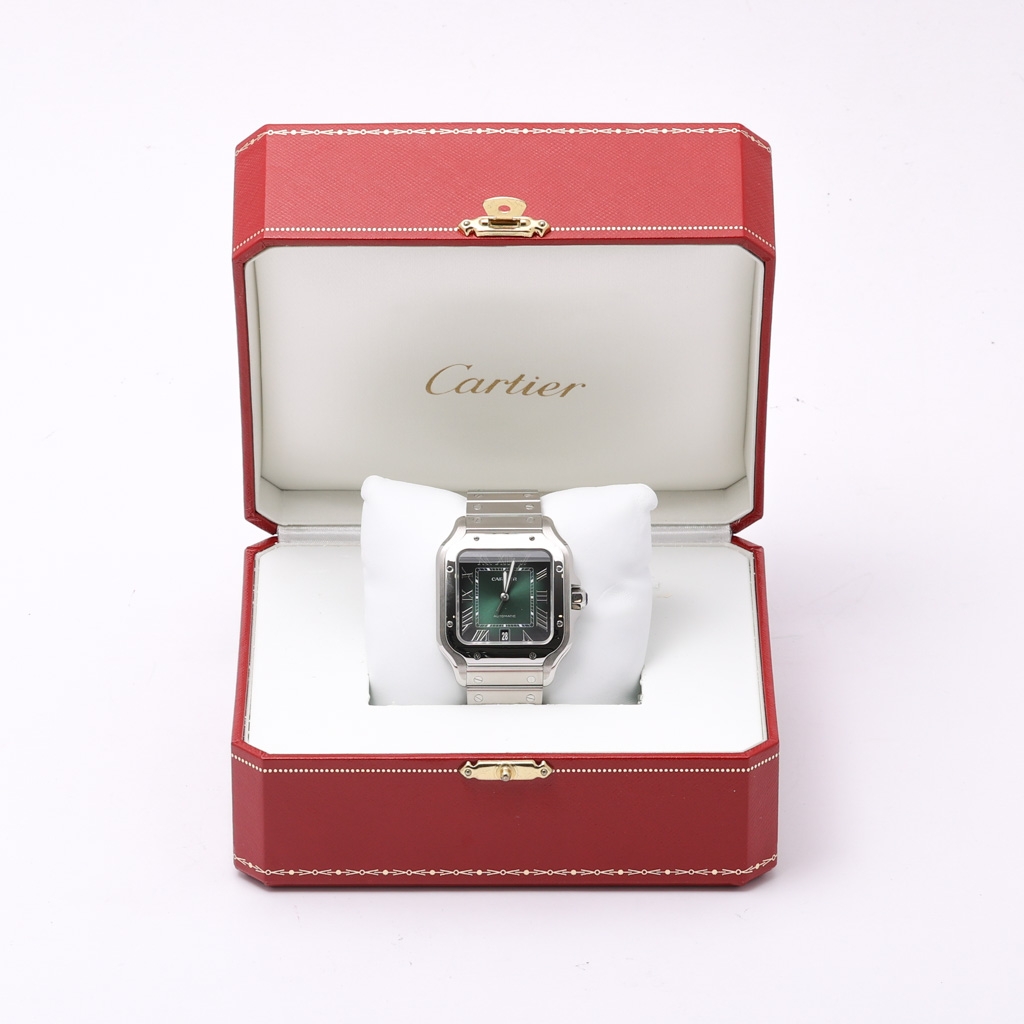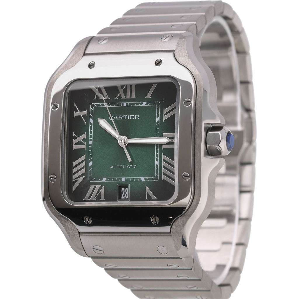 A Cartier Santos Watch, Stainless Steel with a Green Dial