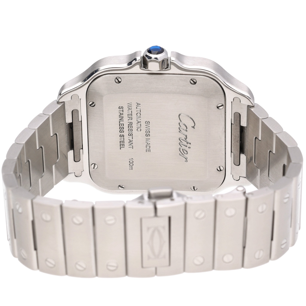 A Cartier Santos WSSA0062 is a stunning modern interpretation of one of the most iconic designs in watchmaking history. This 2025 model, crafted from stainless steel, features the signature square case with exposed screws—a bold and timeless hallmark of the Santos collection.