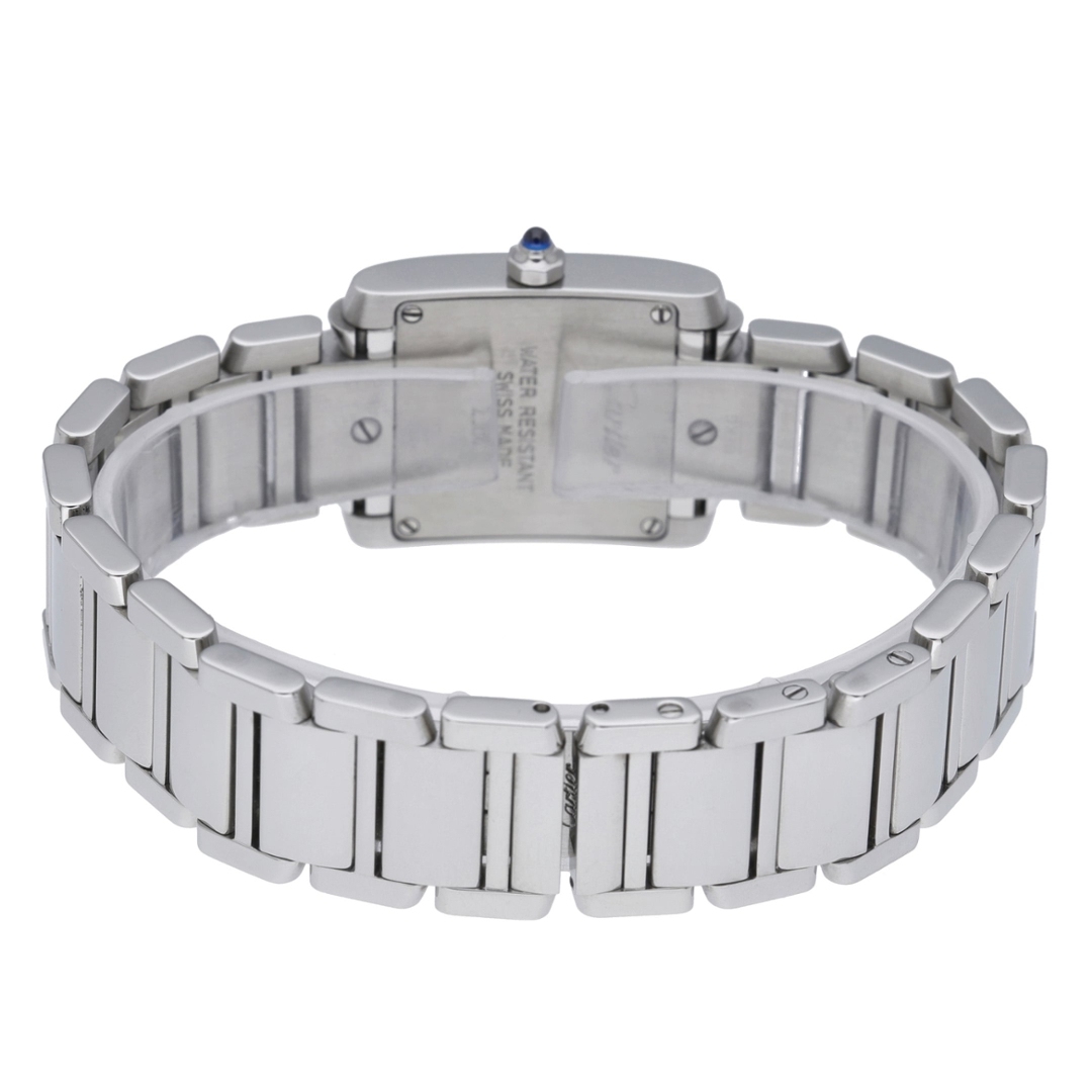 The Tank Française is powered by a Cartier quartz movement, delivering exceptional accuracy and reliability with minimal maintenance. The integrated stainless steel bracelet provides a seamless fit, enhancing comfort and elegance. Designed with Cartier’s renowned craftsmanship, the scratch-resistant sapphire crystal delivers long-lasting durability, while precise Swiss engineering ensures smooth, effortless timekeeping.