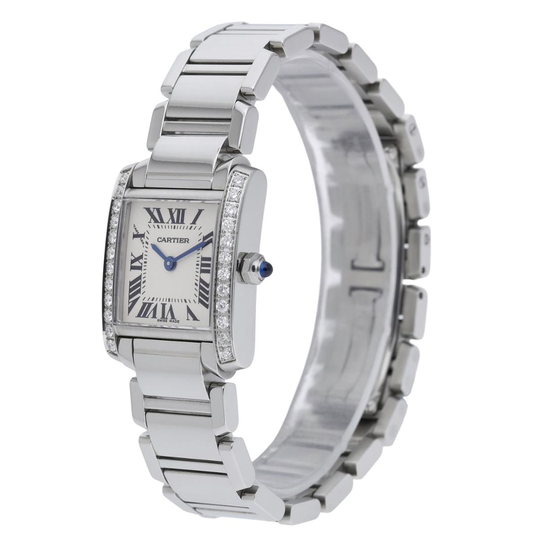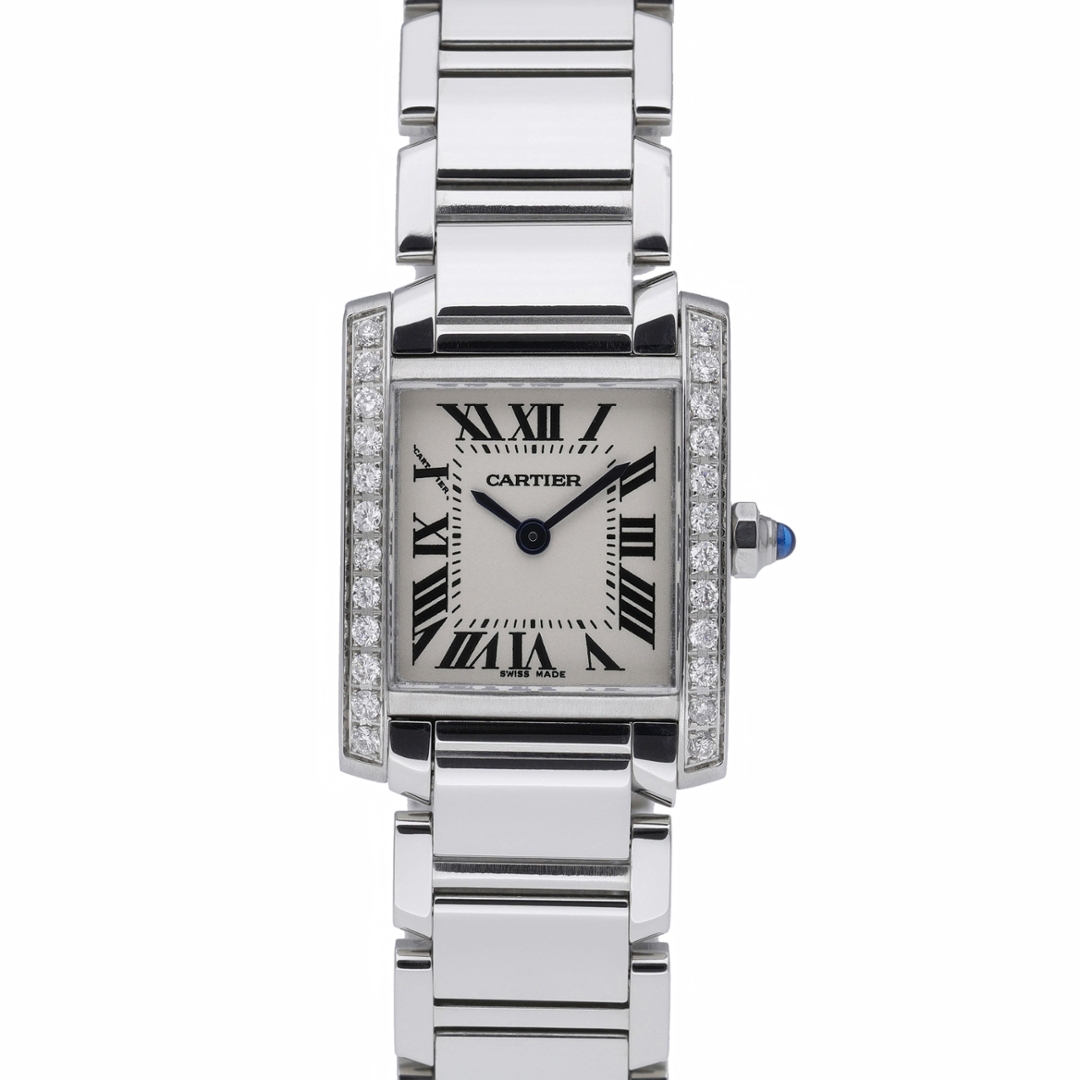 A Cartier Tank Francaise Watch, Stainless Steel with a Diamond Bezel on a White Dial