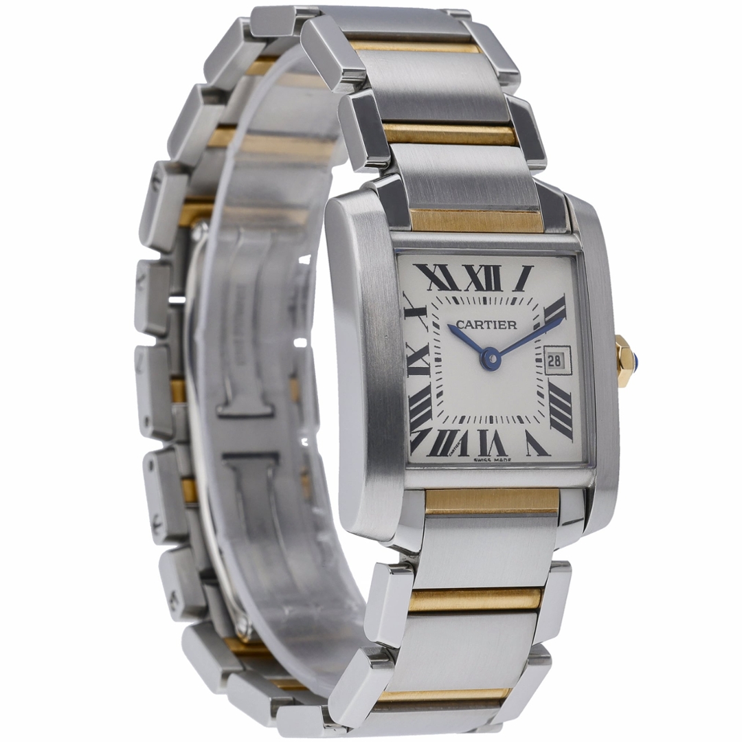 A Cartier Tank Francaise Watch, Stainless Steel & 18ct Yellow Gold on a White Dial