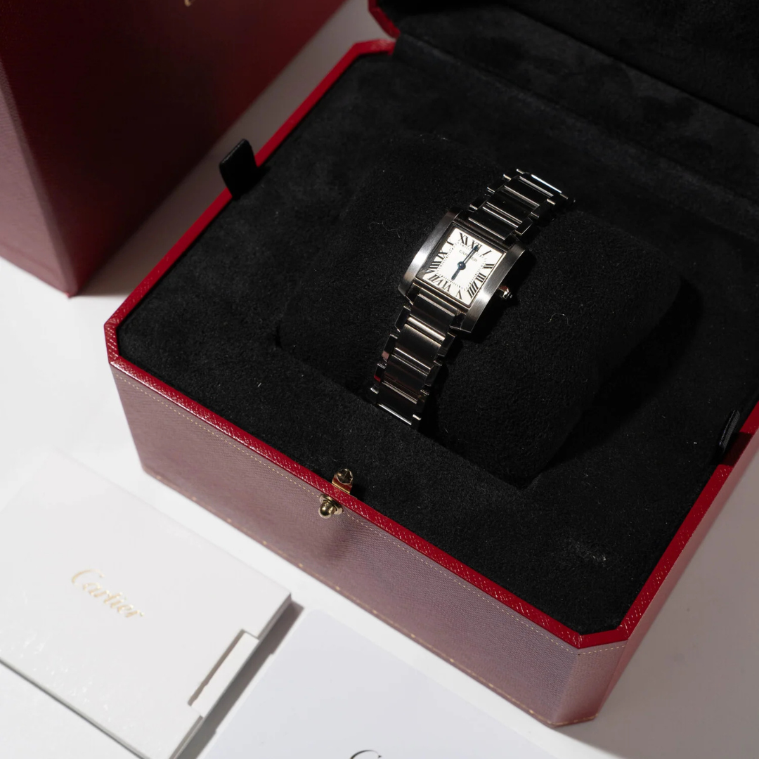 Presented in immaculate condition and dated to 2024, this example is supplied with original Cartier paperwork, box, and certification, and is covered by a 12-Month WLC Warranty. A timeless Tank Française with enduring appeal, offering strong demand within the classic dress watch segment.