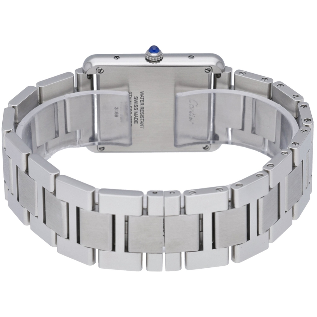The model reference W5200014, from 2013, comes in a 27.5mm case that sits gracefully on the wrist, showcasing the unmistakable rectangular proportions that have defined the Tank since its debut in 1917. Powered by the reliable Cartier calibre 690 quartz movement, this watch ensures effortless precision and convenience, making it a versatile choice for both formal and casual wear.